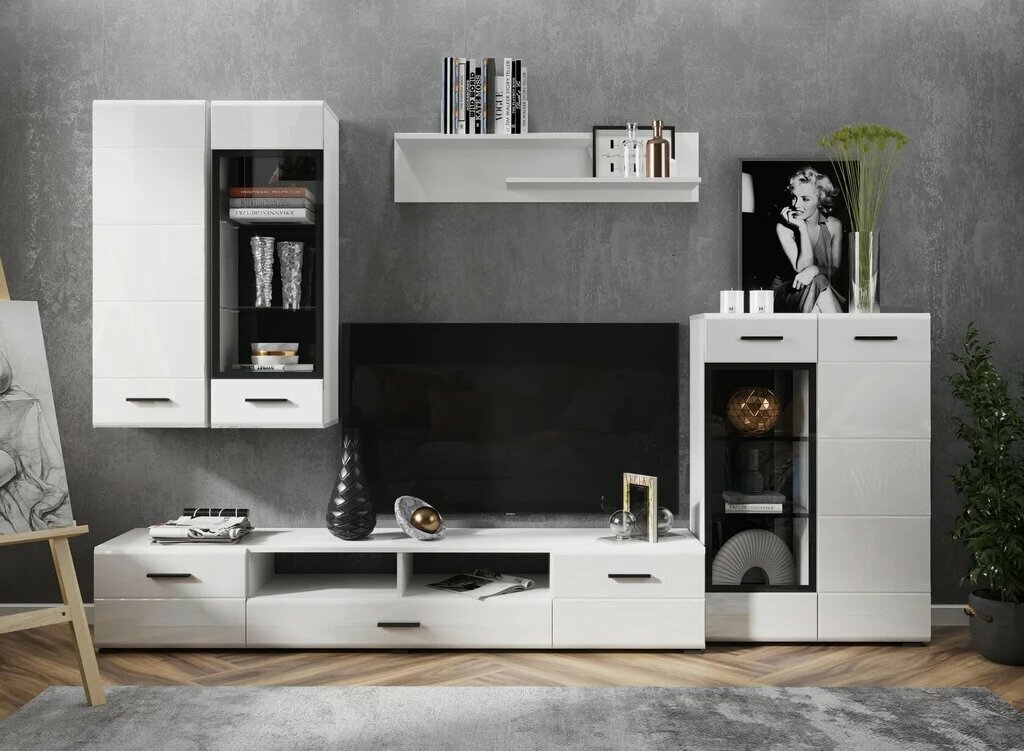 Шкаф-витрина навесной Нонтон Gloss тип-2, белый глянец / белый бриллиант 38 см