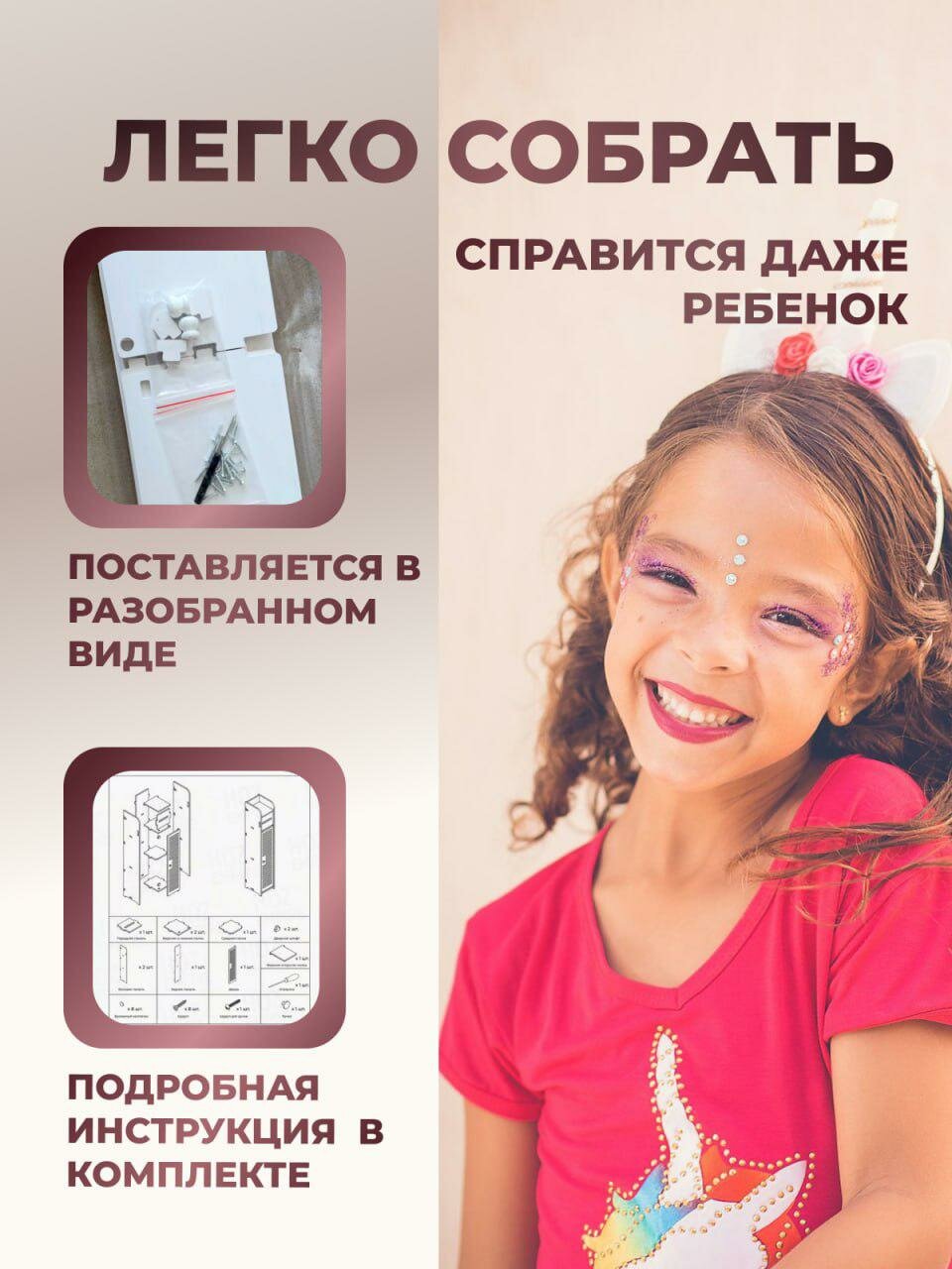 Шкаф для одежды распашной Нонтон Луас, 120 см, 7 полок и штанга, белый глянец