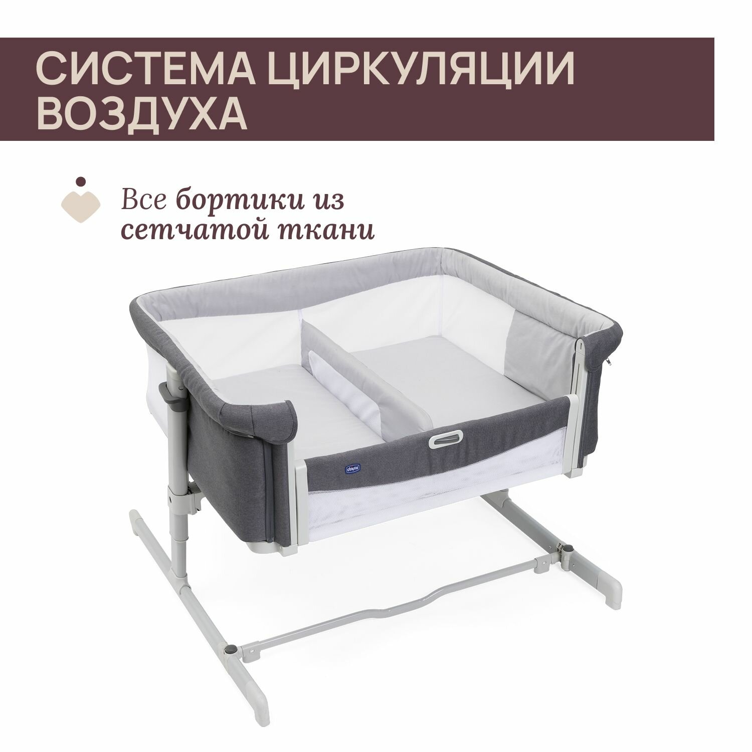 Кроватка Chicco Next2Me Twins Magnet Grey для новорожденных интересное: