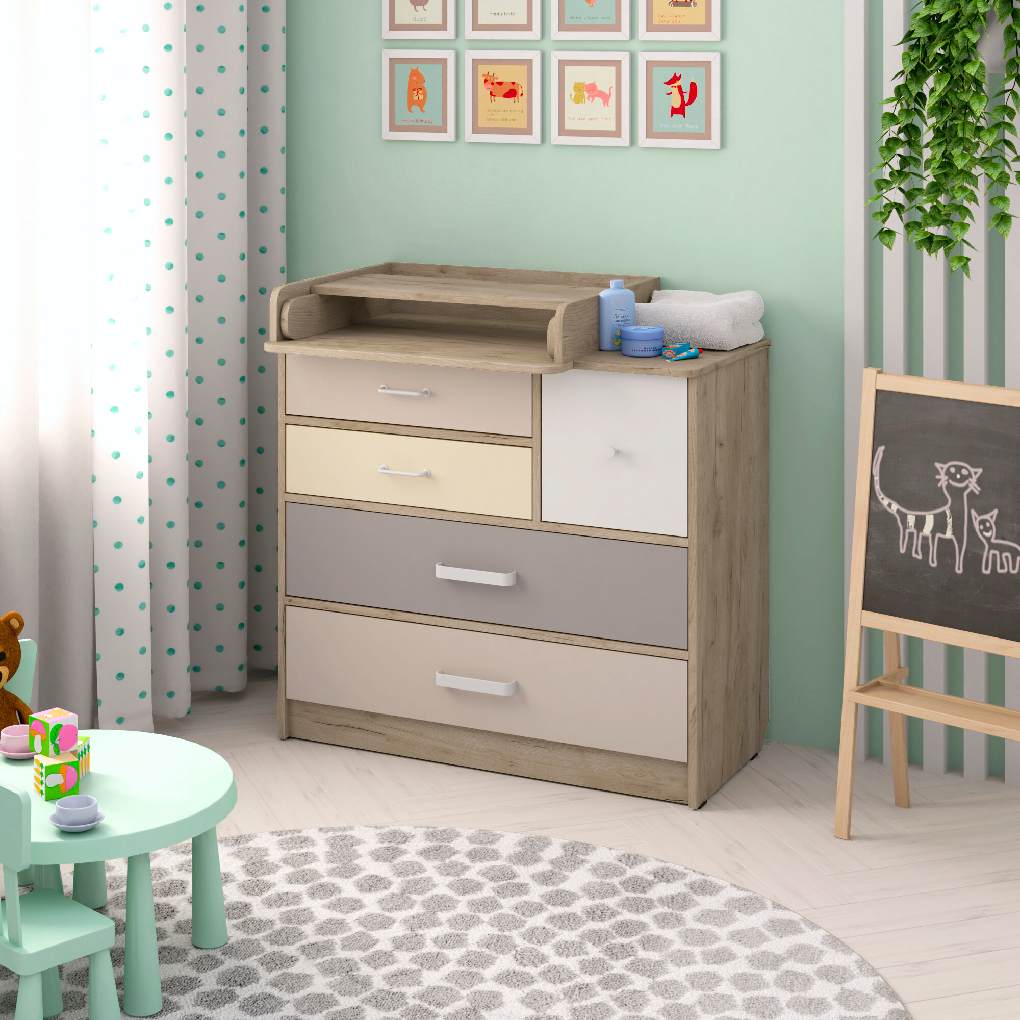 Детский пеленальный комод Атон Сириус Norman 905 с 5 ящиками, ЛДСП, дуб крафт серый интересное: