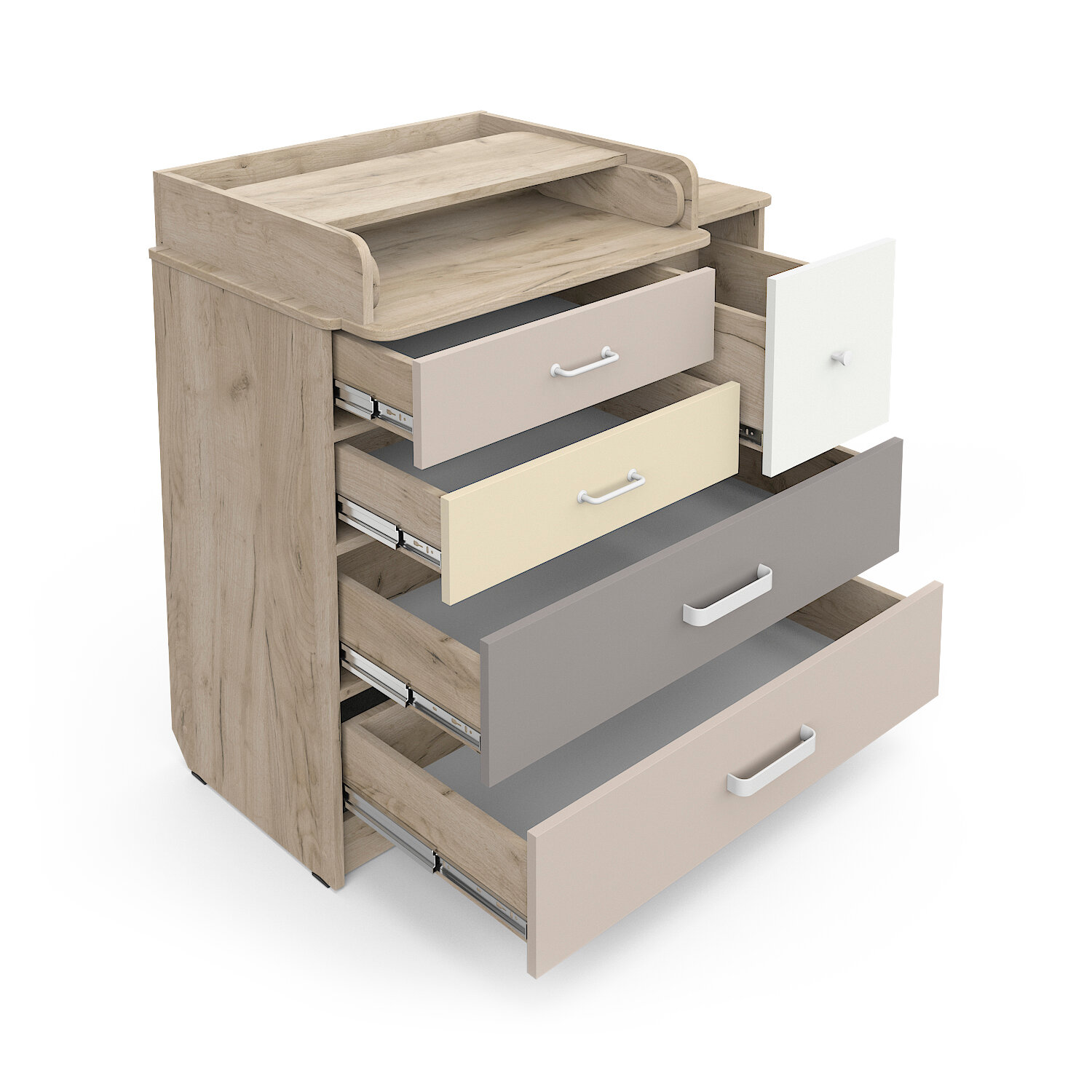 Детский пеленальный комод Атон Сириус Norman 905 с 5 ящиками, ЛДСП, дуб крафт белый