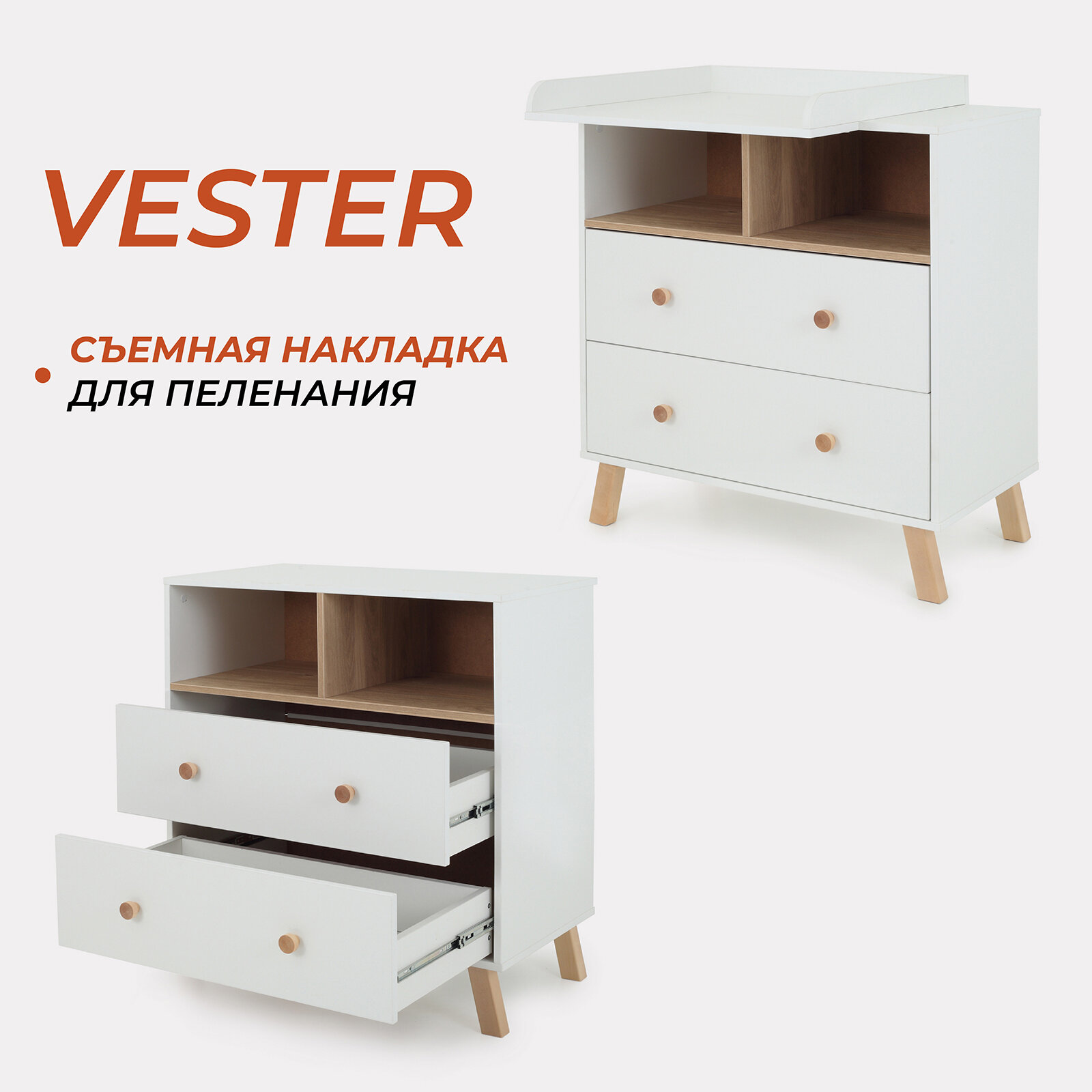 Комод для вещей пеленальный (деревянный) Rant Vester 80 см, 2 ящика 2 отсека (арт.115) Crystal Beige