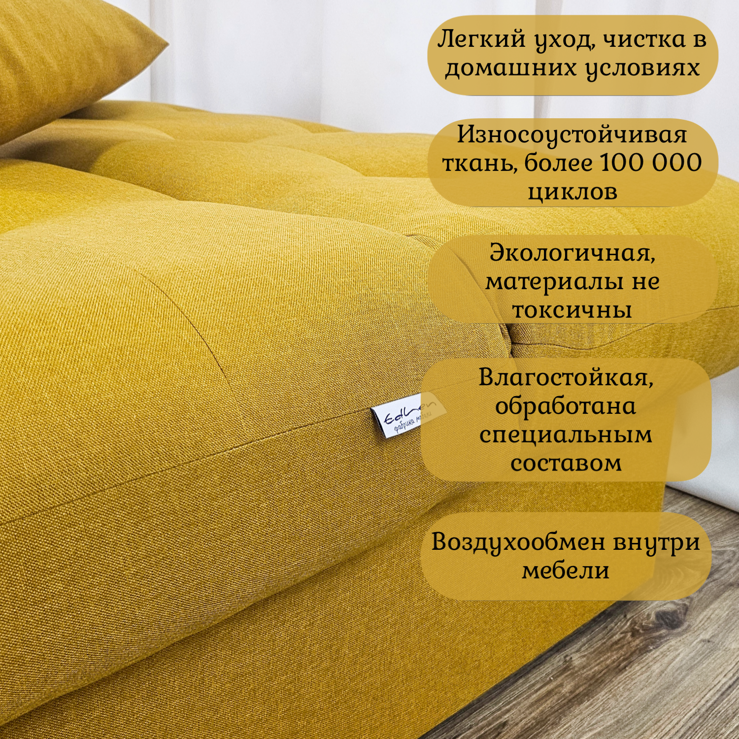 Диван кровать Поло Стайл PLUS, EDLEN, рогожка yellow, с коробом для белья интересное: