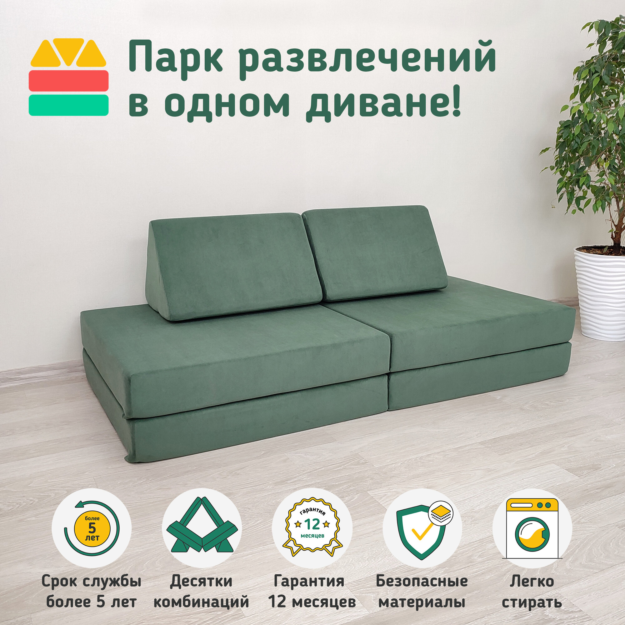 СохранитьДетская кровать Диван трансформер Игровой комплекс, зеленый интересное: