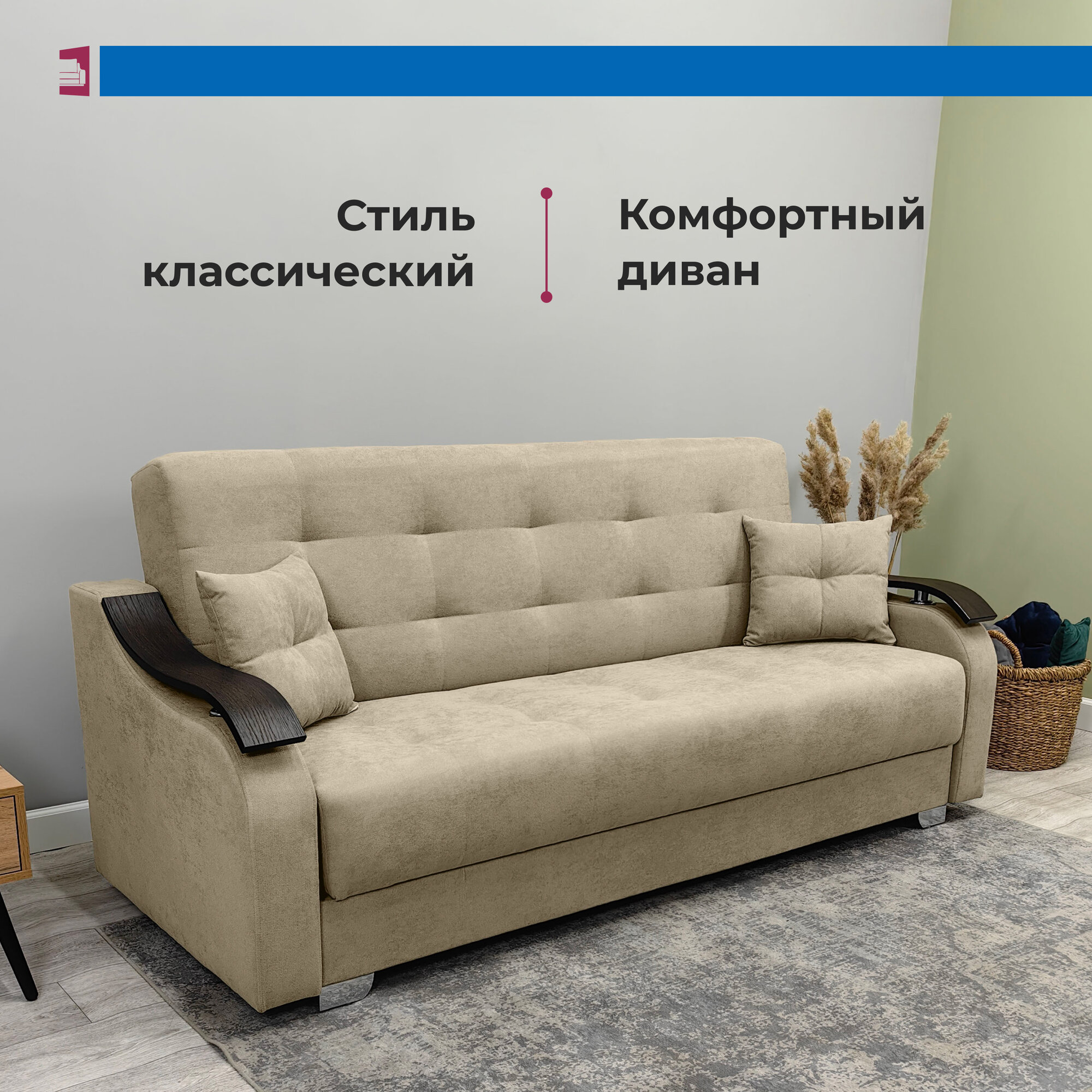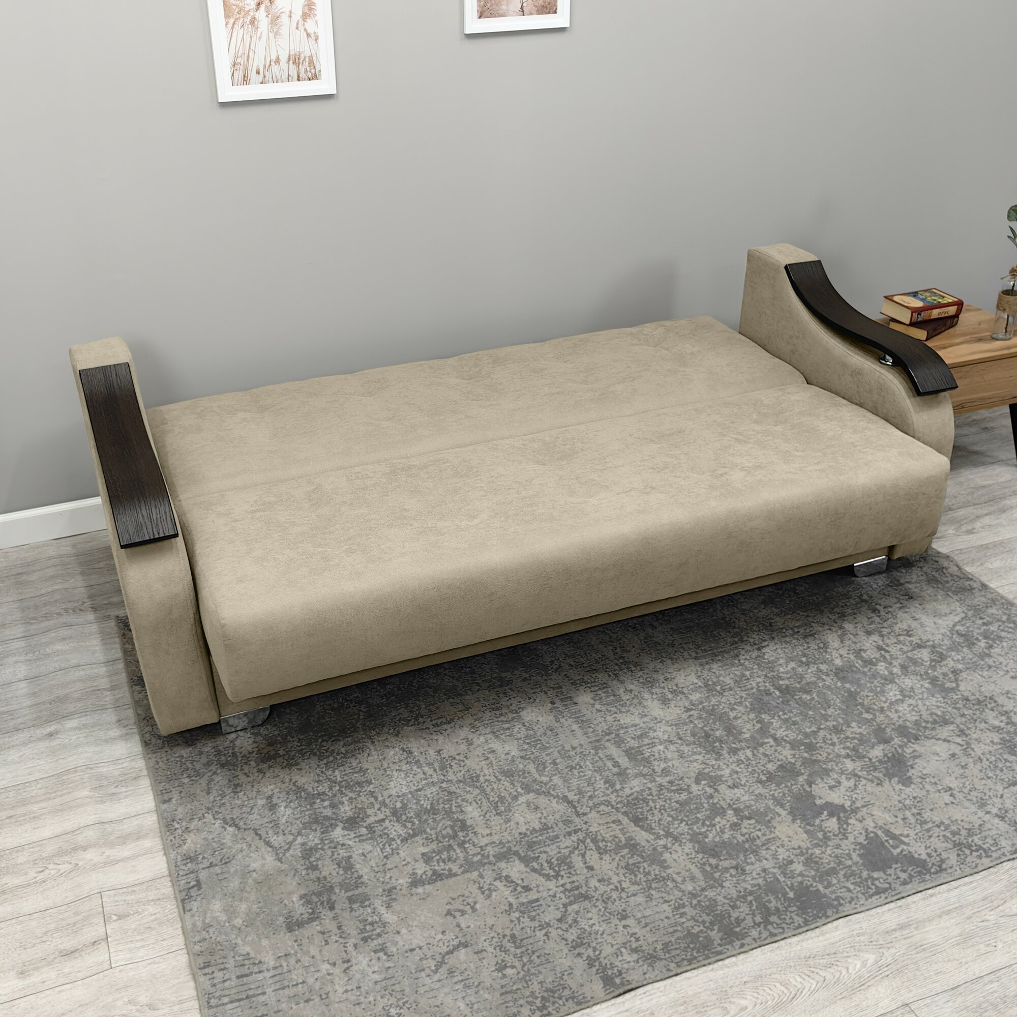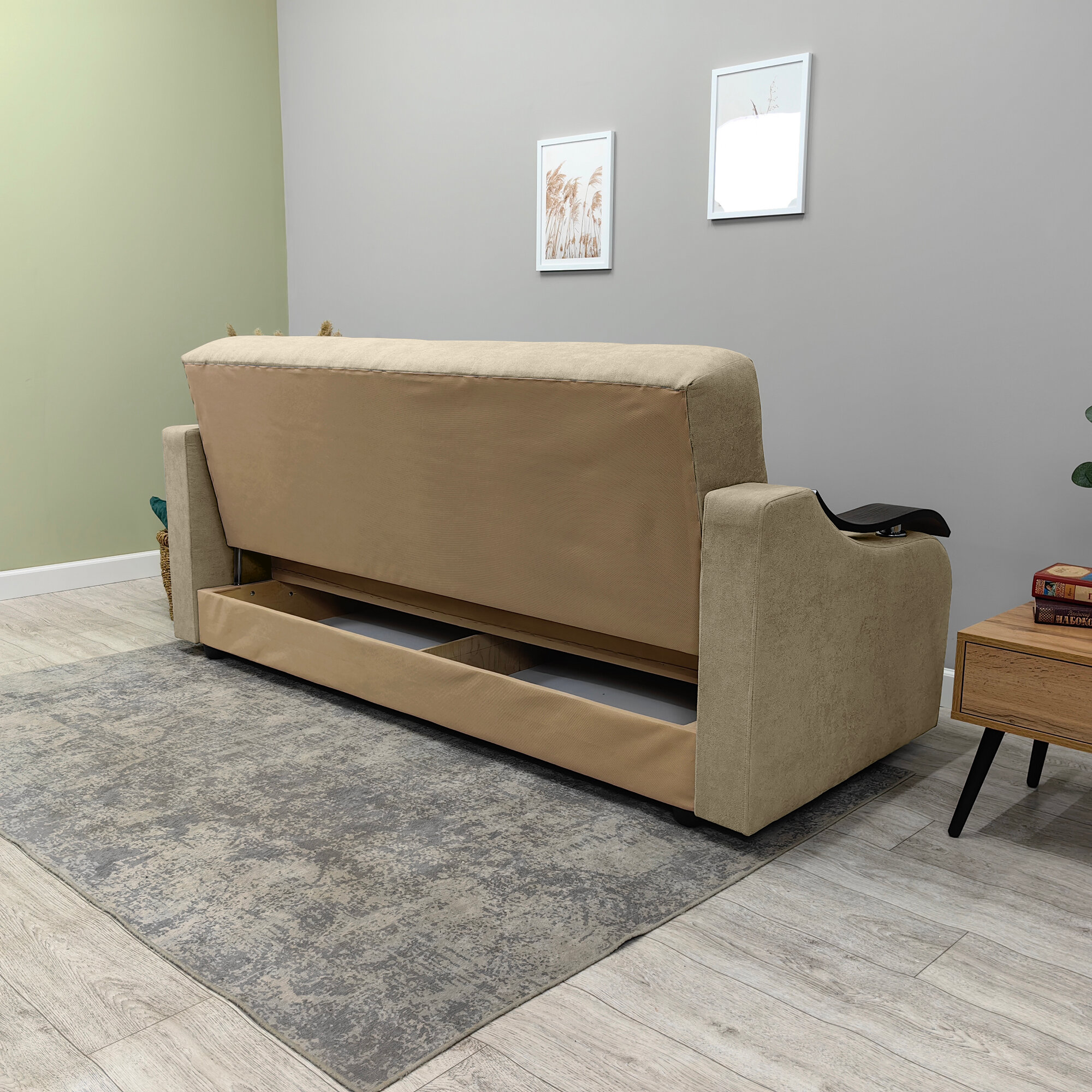 | Особенности | раскладная конструкция, с подлокотниками, ящик для белья |