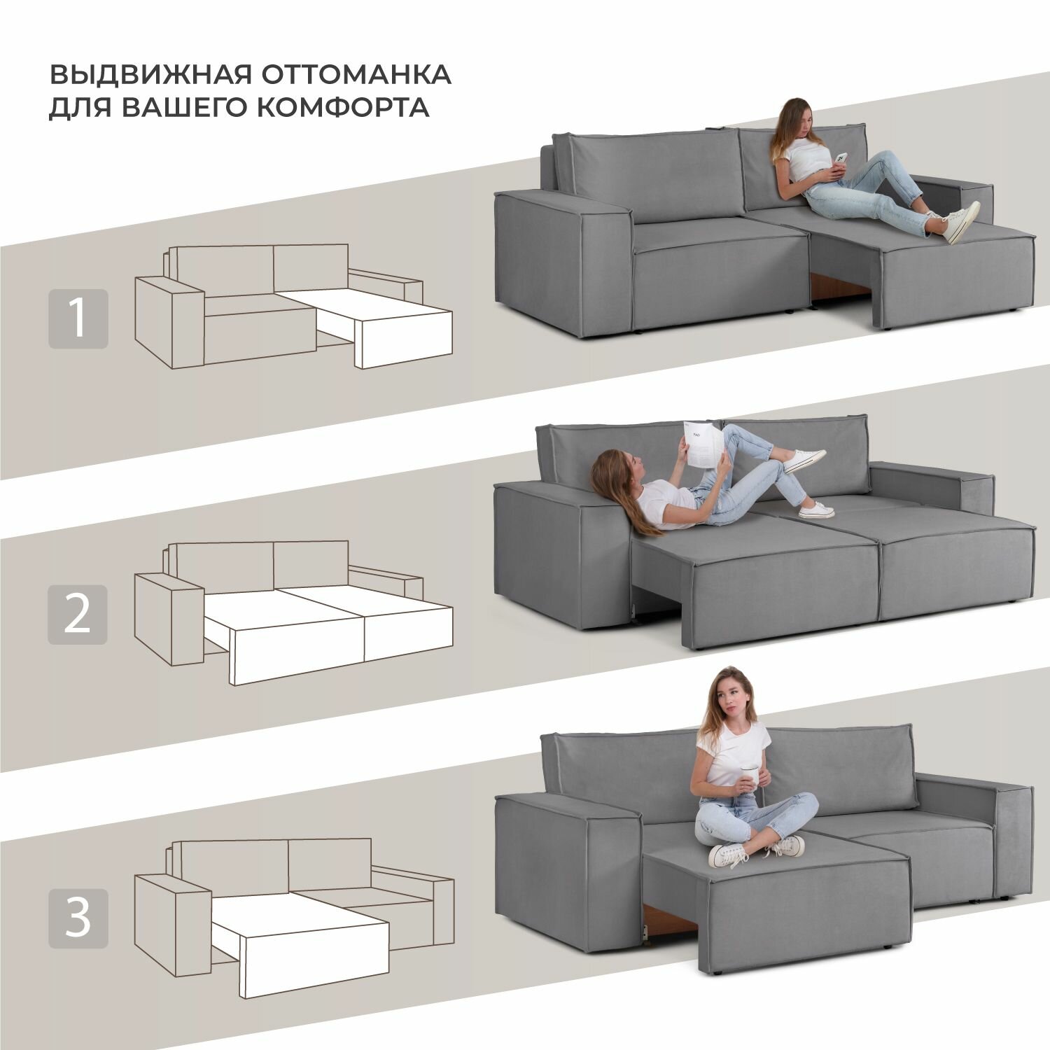 Диван-кровать, диван раскладной, прямой NRAVA Loft M Lite 2470х1000х890 серый
