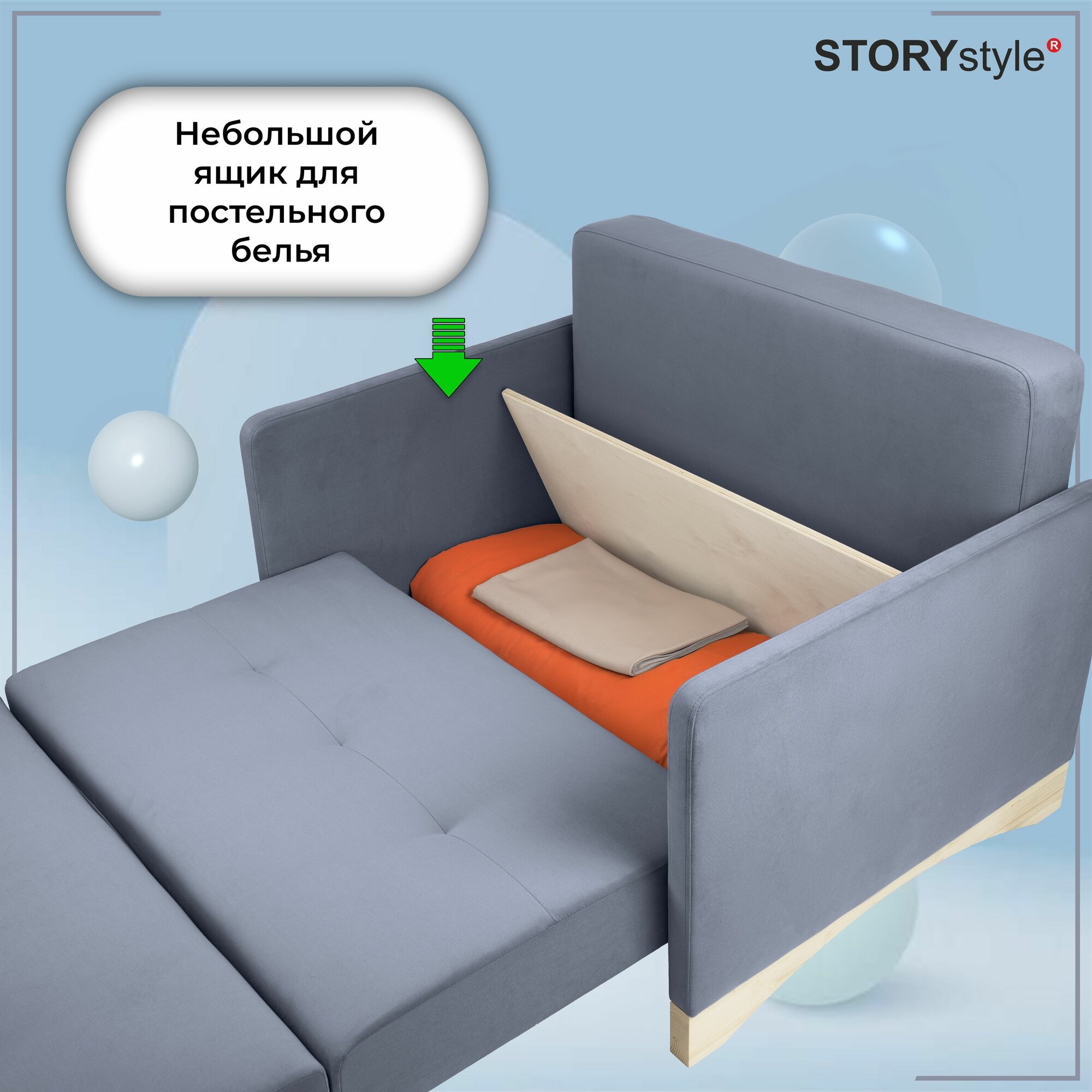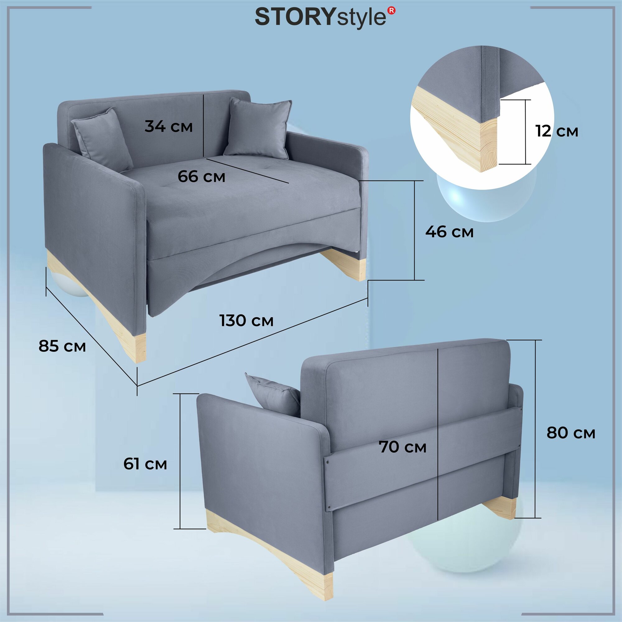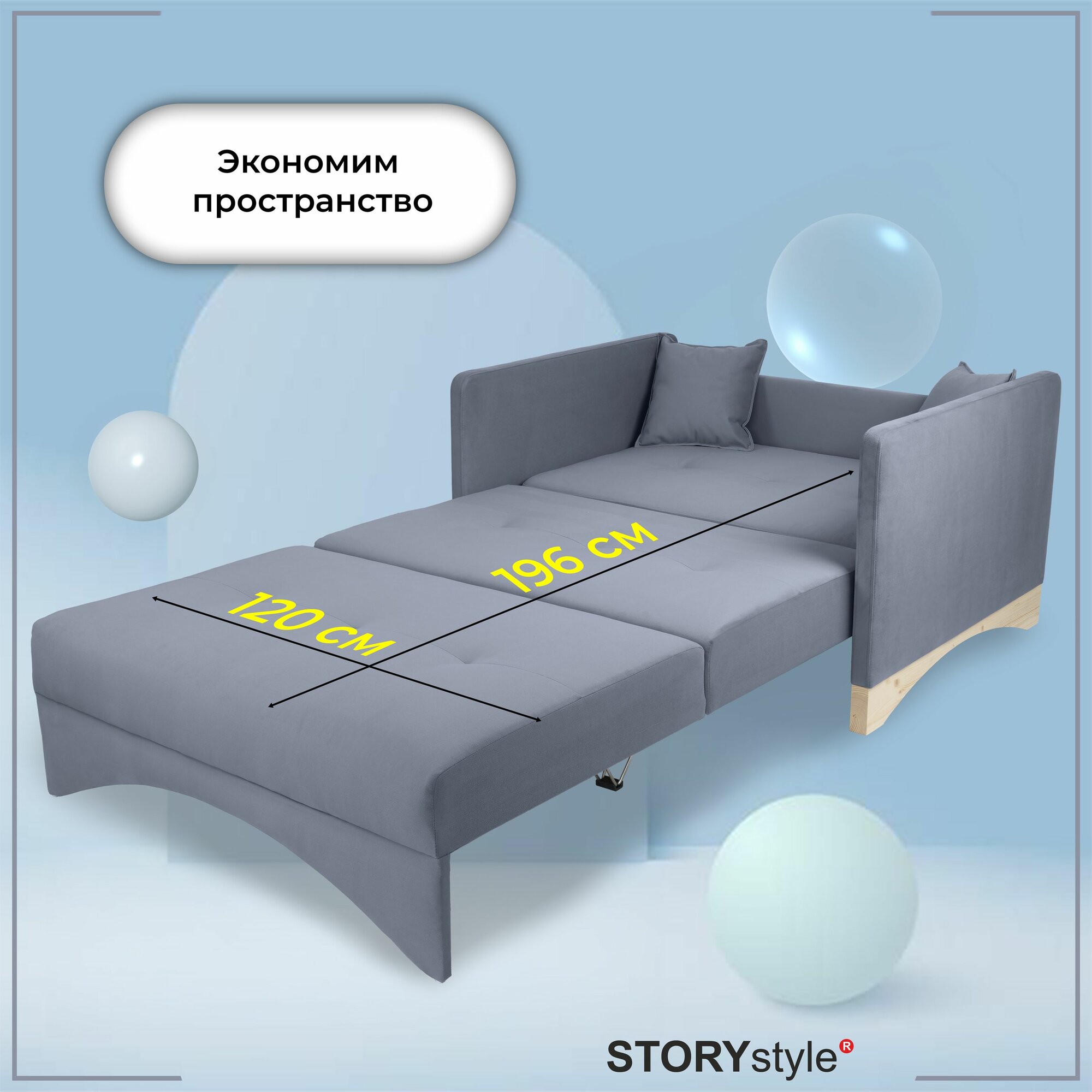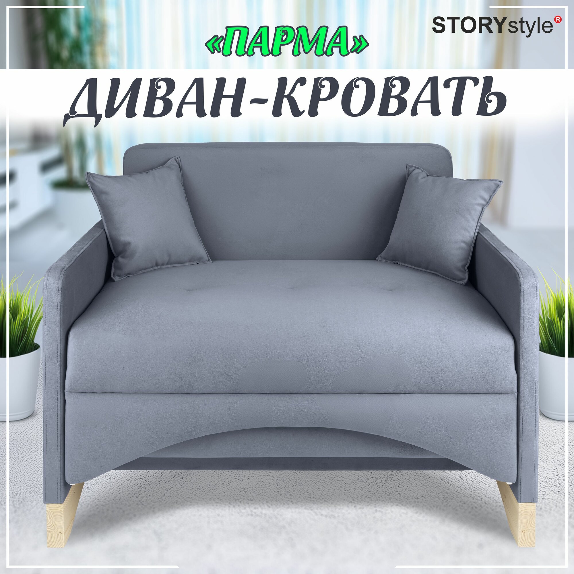 Диван-кровать Парма серый велюр, 130х85х80, спальное 120х196