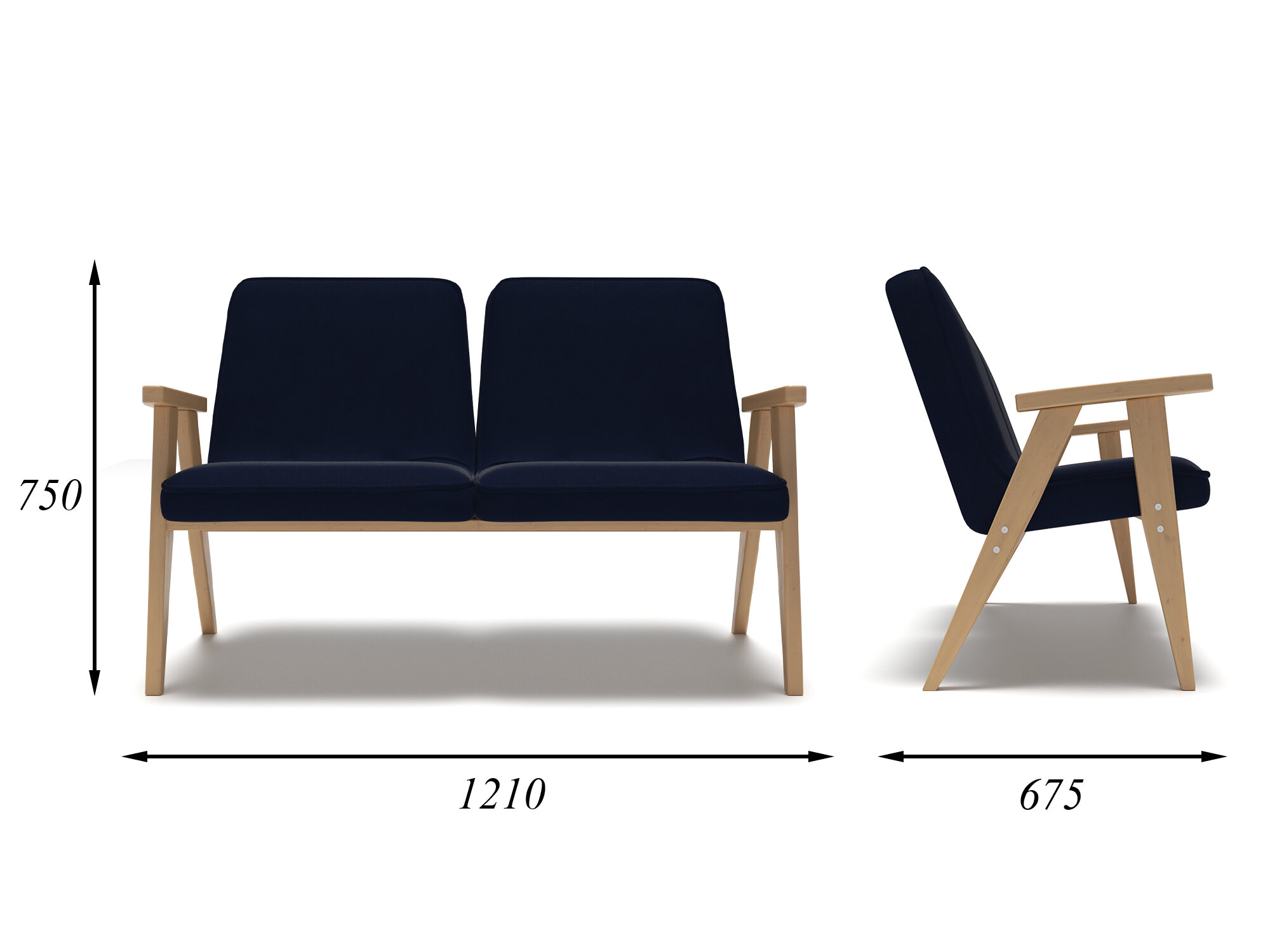 Купить Диван Soft Element ДаблДжек Dark Blue двухместный, массив дерева, стиль скандинавский лофт, в кафе, в офис, для салона красоты, в зону ожидания