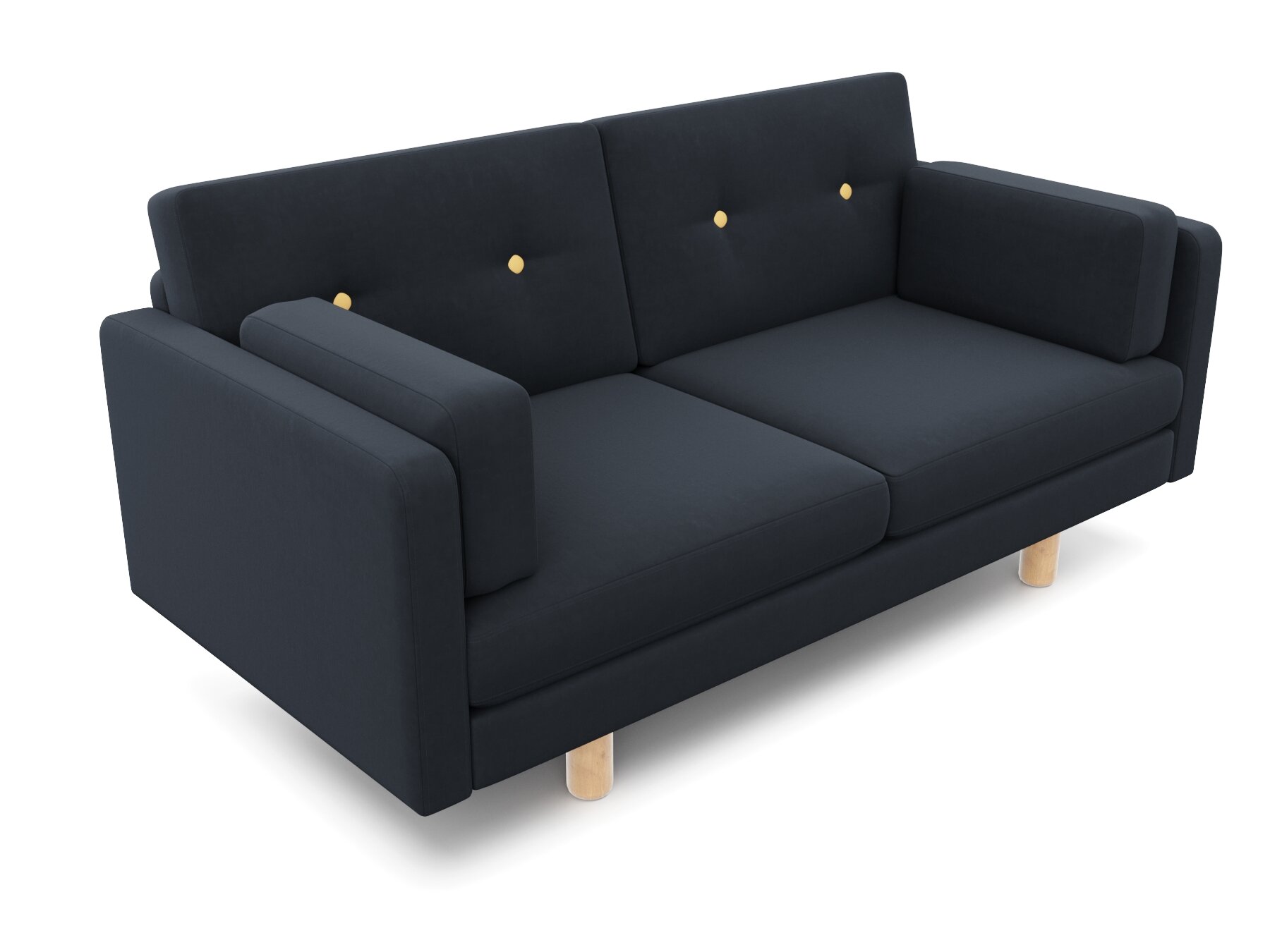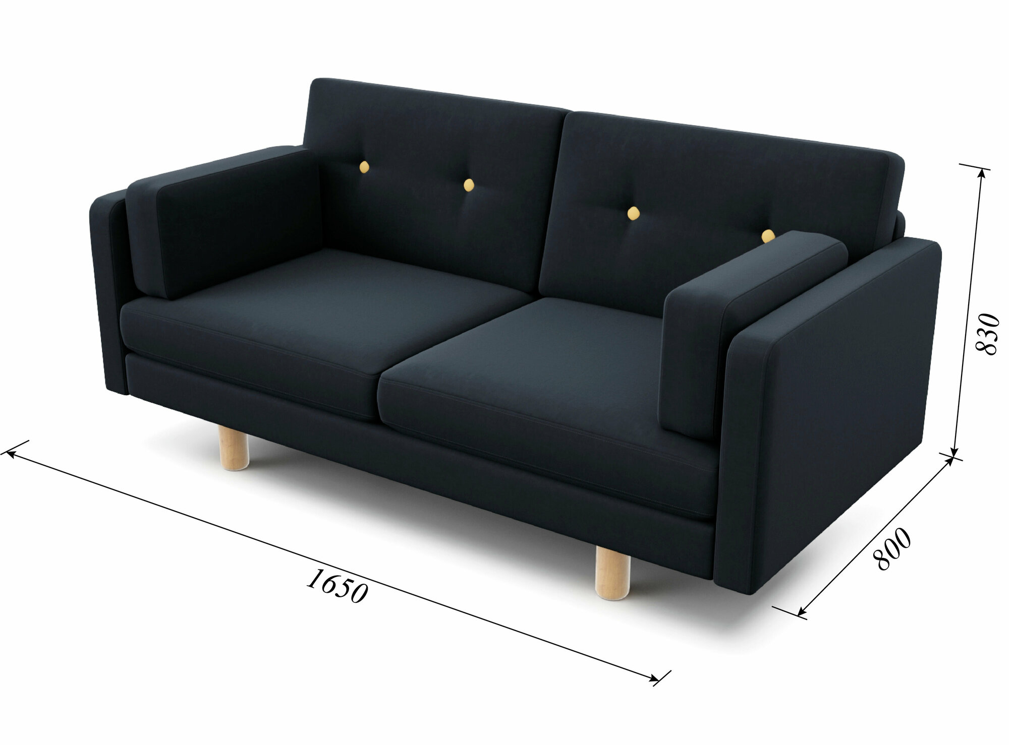 Прямой диван ингвар-м темно-синий, велюр, двухместный, в гостиную, в офис, для кафе и бара, на ножках, скандинавский лофт