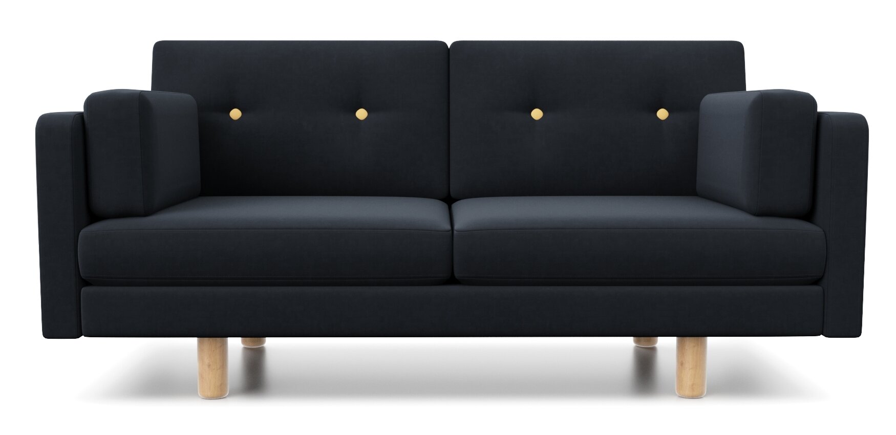 Прямой диван ИНГВАР-М темно-синий, велюр, двухместный, в гостиную, в офис, для кафе, на ножках, скандинавский лофт
