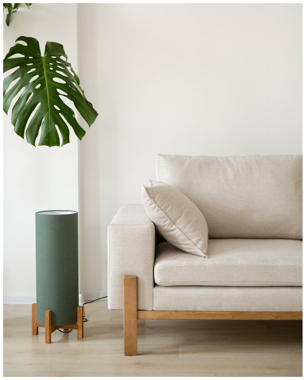 Прямой дизайнерский диван Soft Element Хангель трехместный, деревянные ножки, рогожка, зеленый, стиль скандинавский лофт
