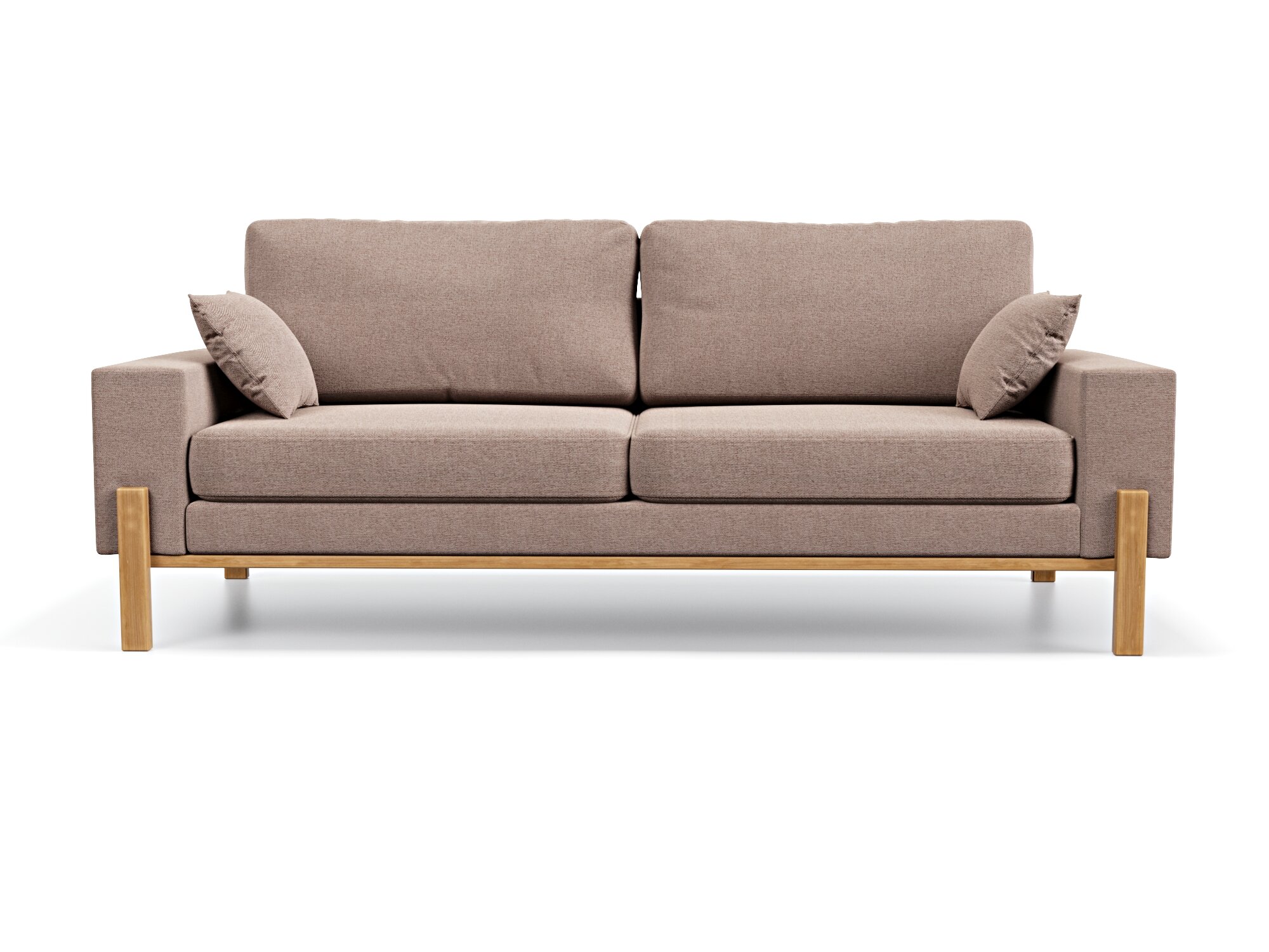 Купить Прямой дизайнерский диван Soft Element Хангель, трехместный, массив дерева, рогожка, темно-бежевый, стиль скандинавский лофт, дачный