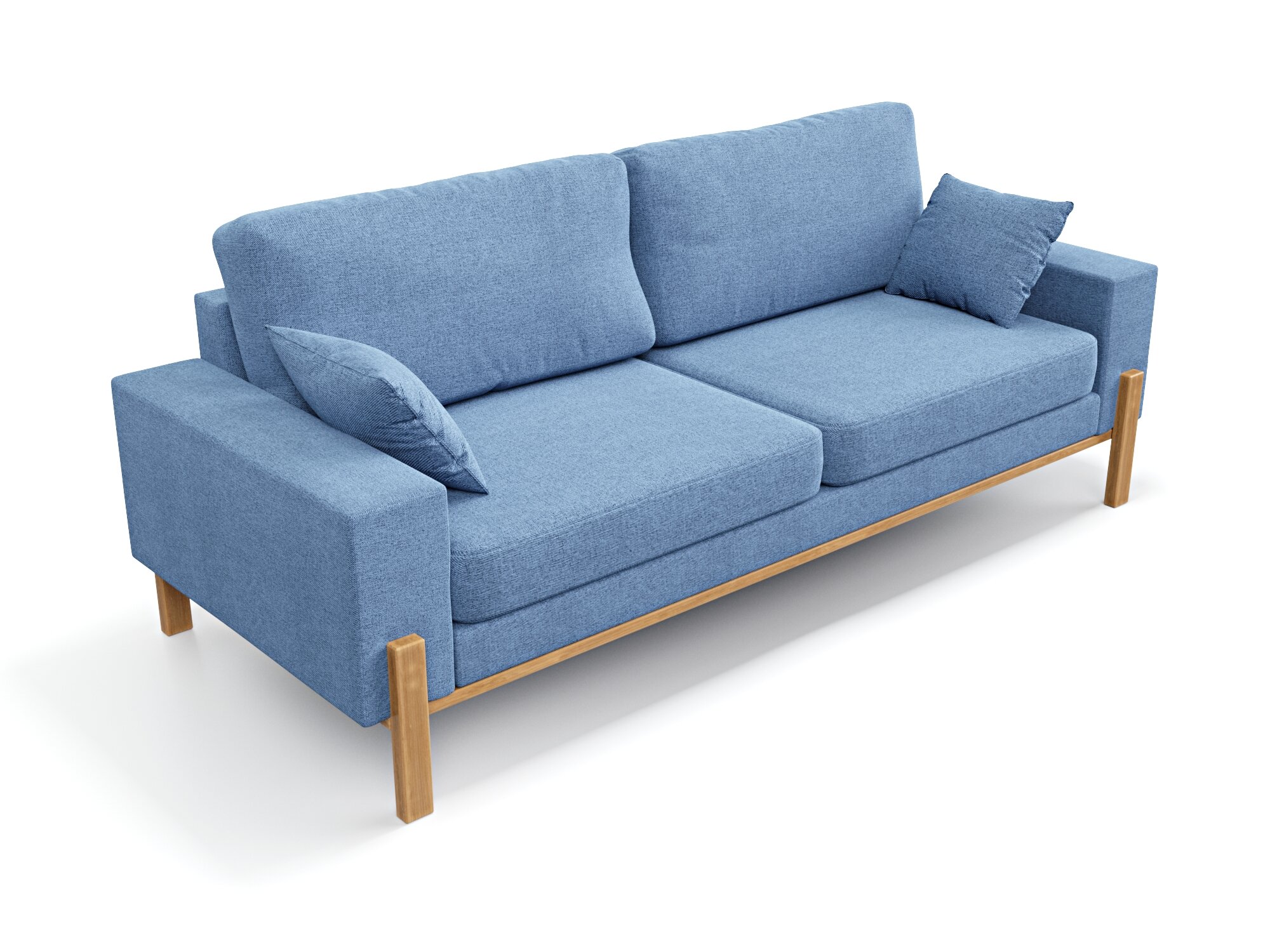 Прямой дизайнерский диван Soft Element Хангель, трехместный, массив дерева, рогожка, синий, в гостиную, на дачу