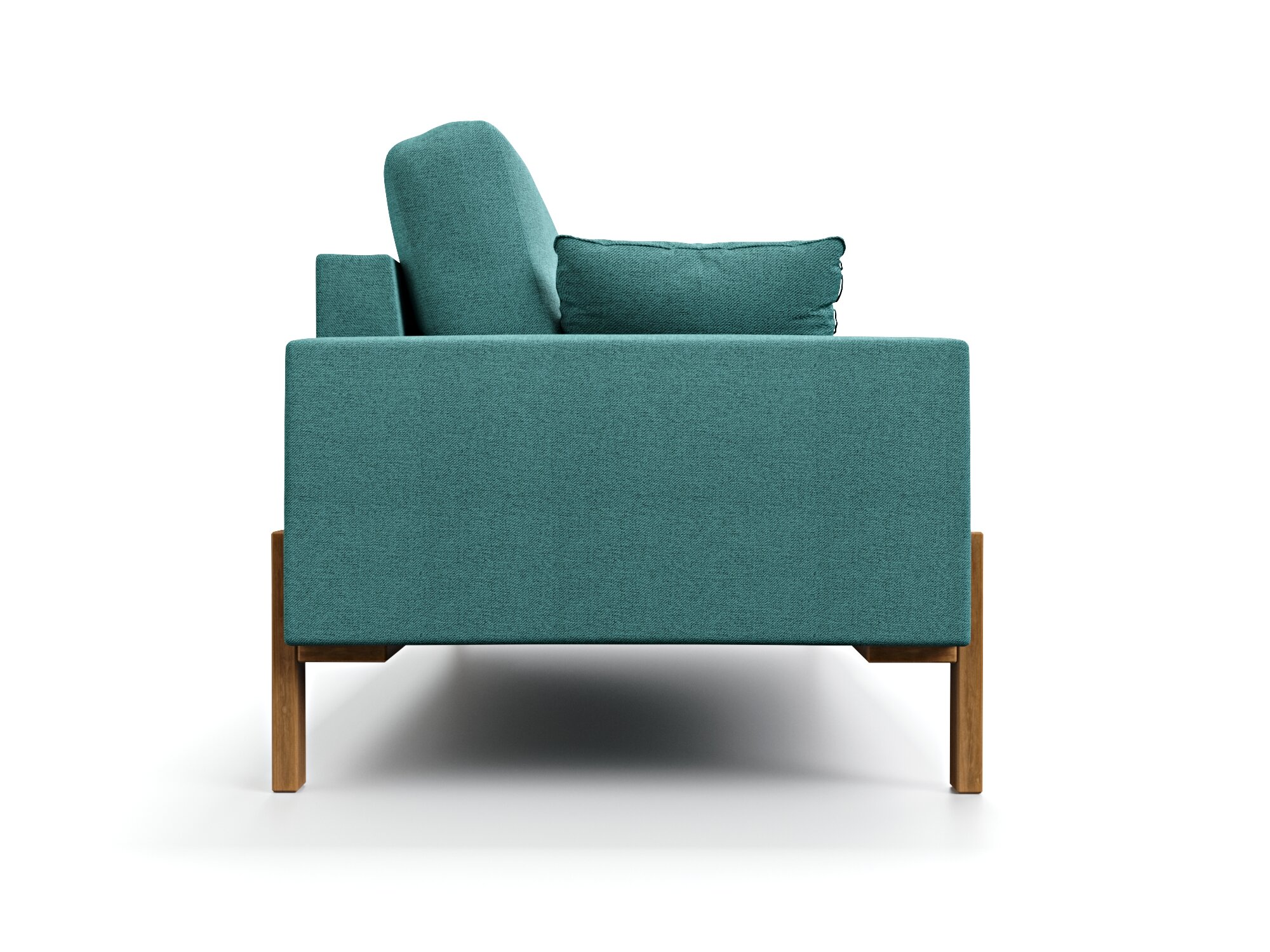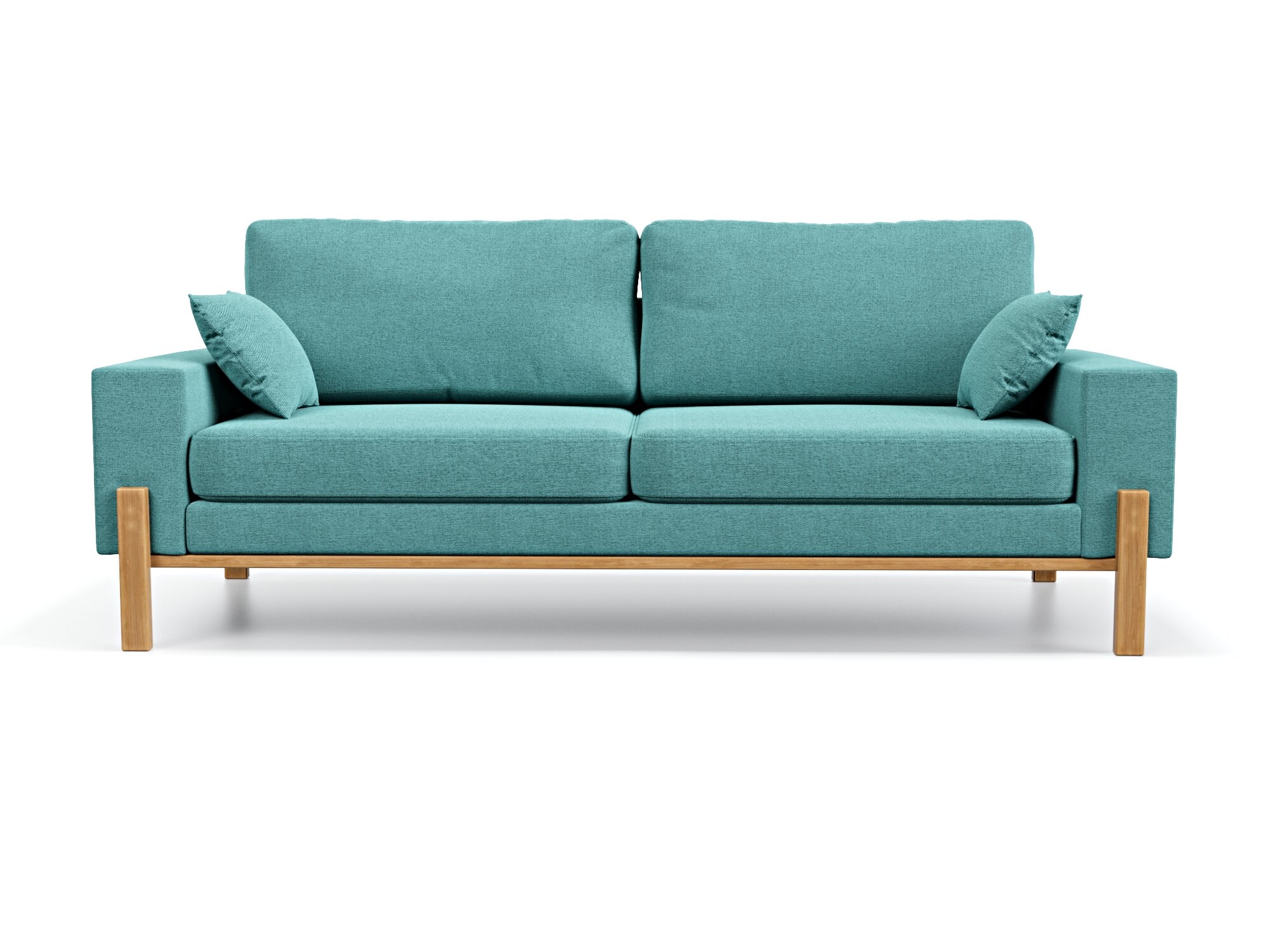 Прямой дизайнерский диван Soft Element Хангель трехместный, деревянные ножки, рогожка, зеленый, стиль скандинавский лофт