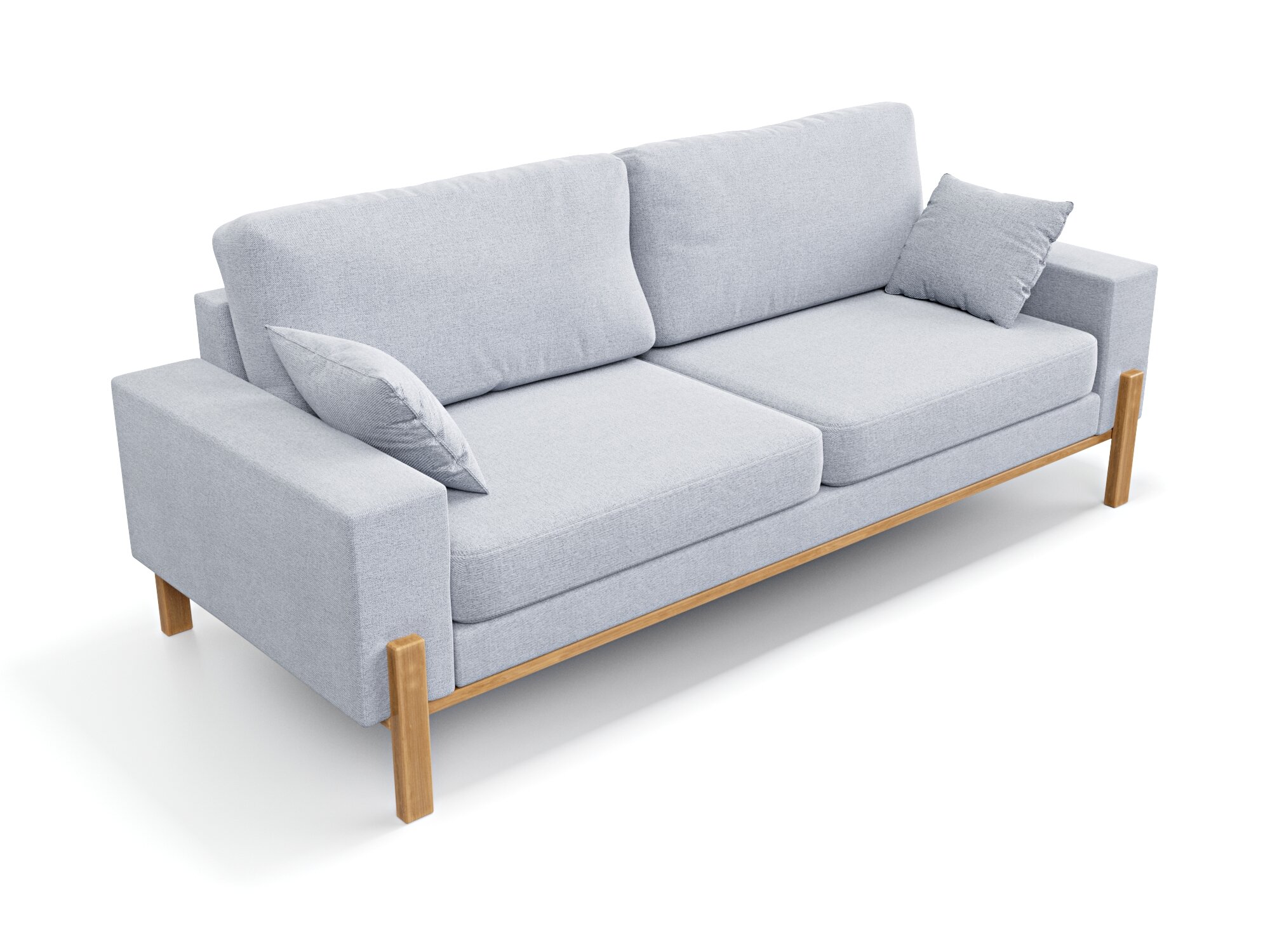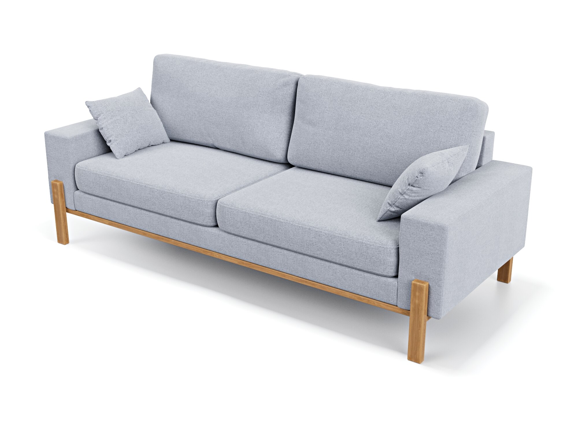 Диван Soft Element Хангель, трехместный, массив дерева, рогожка, светло-серый, стиль скандинавский лофт, в гостиную
