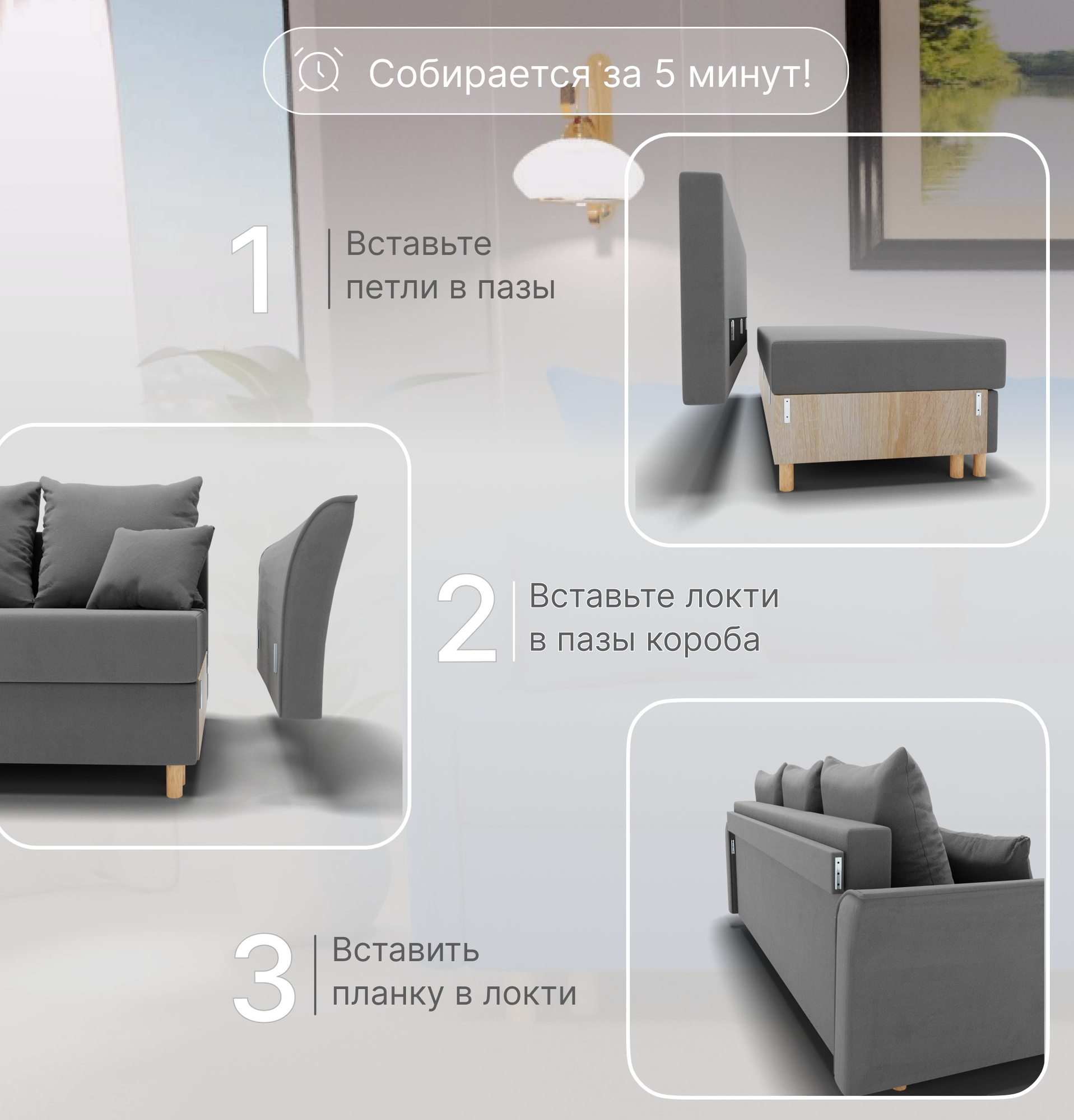 | Особенности | раскладная конструкция, с подлокотниками, съемные подушки, ящик для белья |