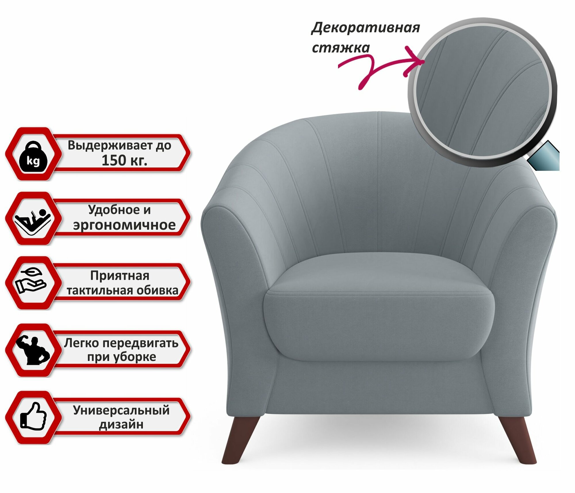 Ниже Вы можете прочитать отзывы на Мягкое кресло Line серый Zeppelin, из велюра на ножках, ознакомится с подробными характеристиками, посмотреть интересные обзоры и фотографии на Мягкое кресло Line серый Zeppelin, из велюра на ножках.