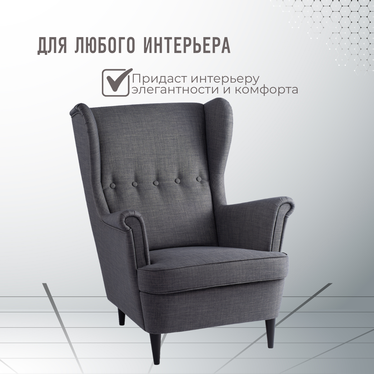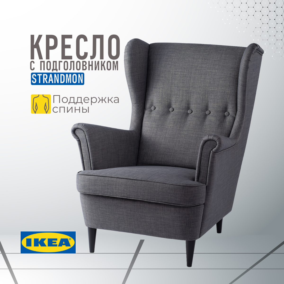 Кресло икеа страндмон с подголовником, 82 x 96 см, обивка: текстиль., цвет: темно-серый интересное: