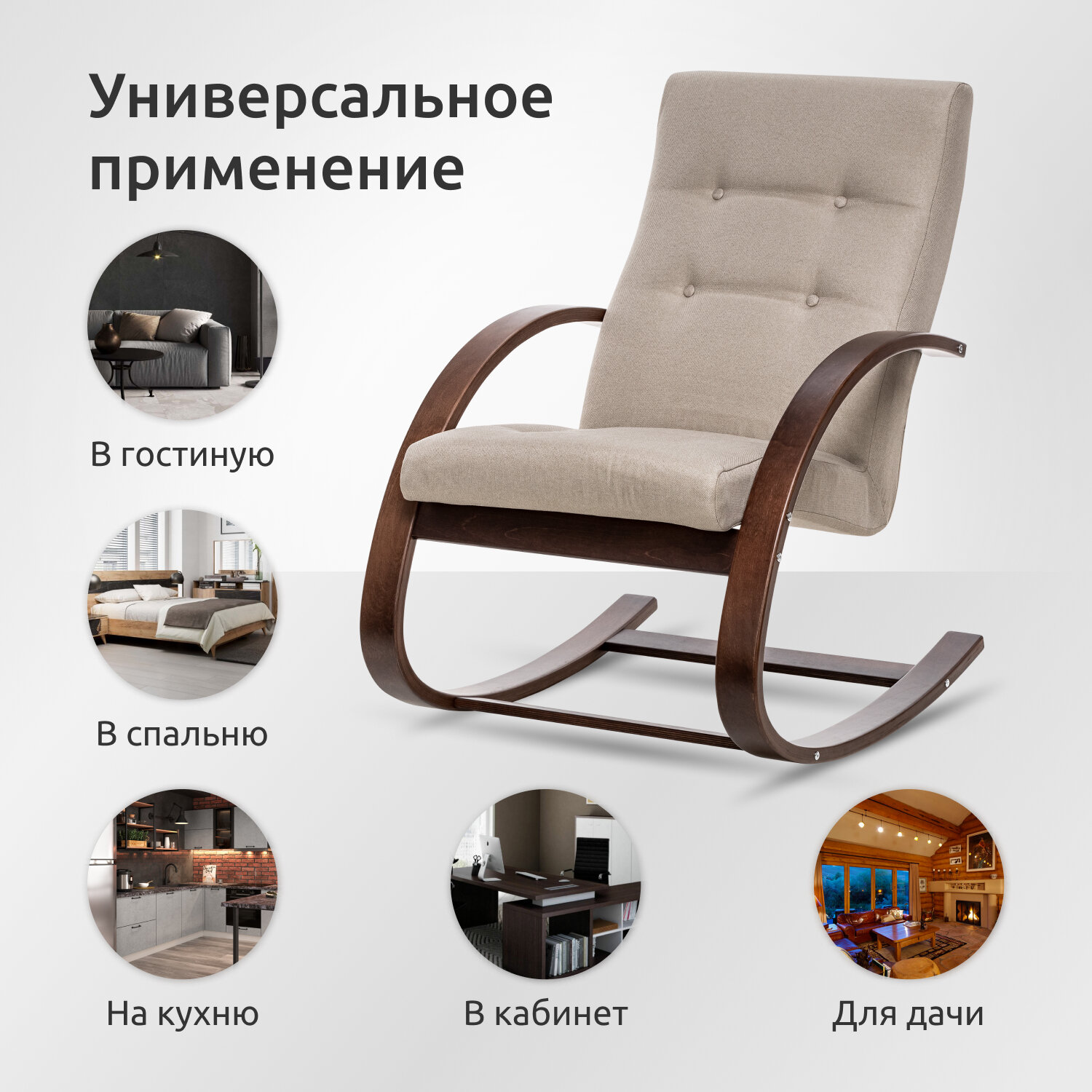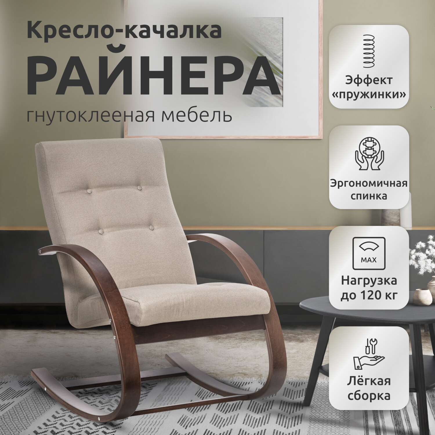 Кресло-качалка Райнера, Орех, ткань рогожка Lunar Ivory (бежевая) интересное: