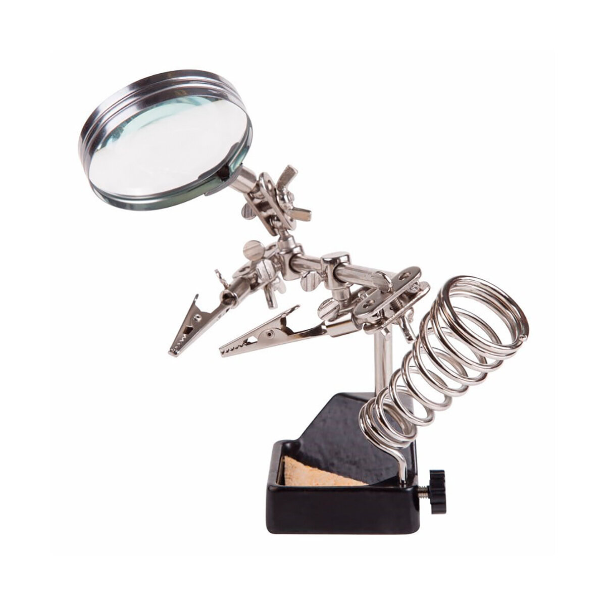 Купить Зажим для пайки Rexant Третья рука, с лупой d 60 мм, 2 зажима, подставка