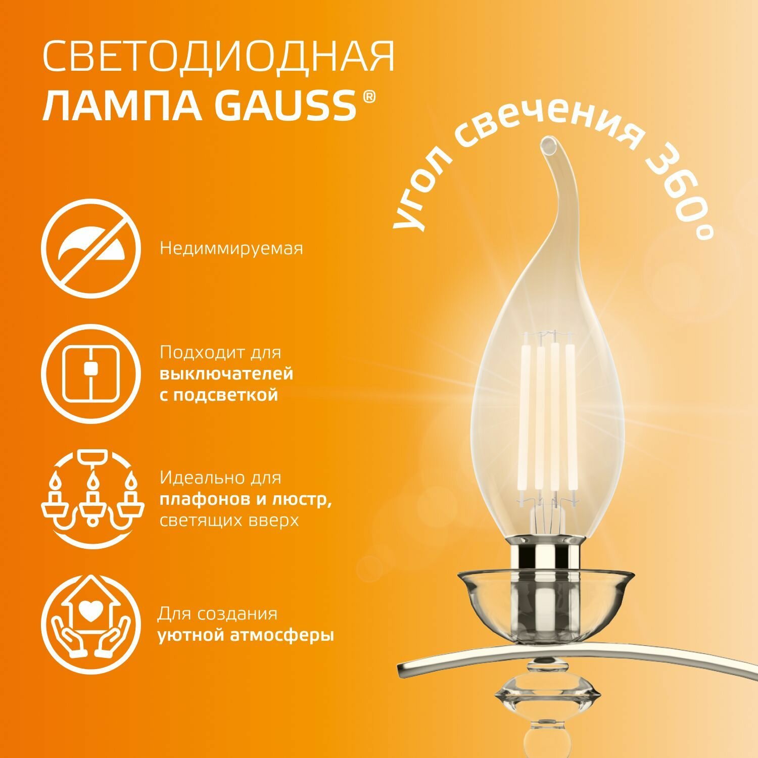 Купить Лампочка светодиодная E14 Свеча на ветру 8W теплый свет 2700К упаковка 10 шт. Gauss Elementary Filament