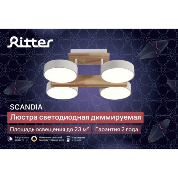 Люстра потолочная светодиодная с пультом Ritter SCANDIA, 45Вт, до 17кв.м., цвет белый/дерево, 51589 4