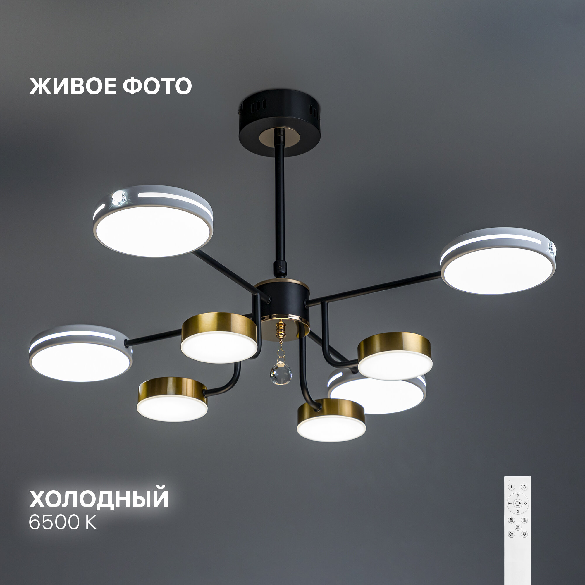 Люстра потолочная ritter scandia 148вт led 8900лм 2700/6400к черный/золото