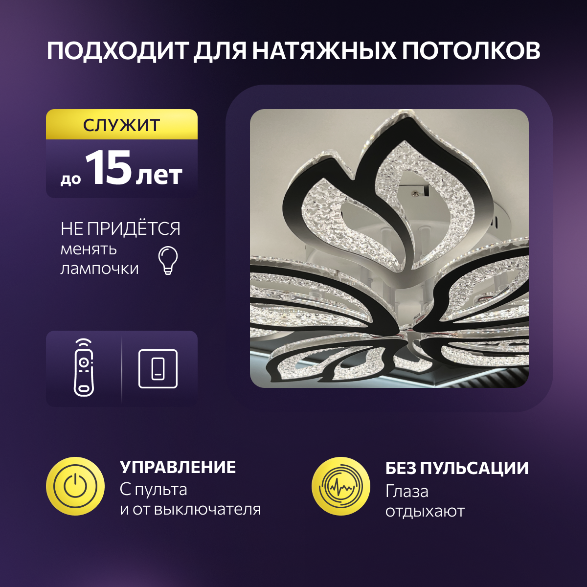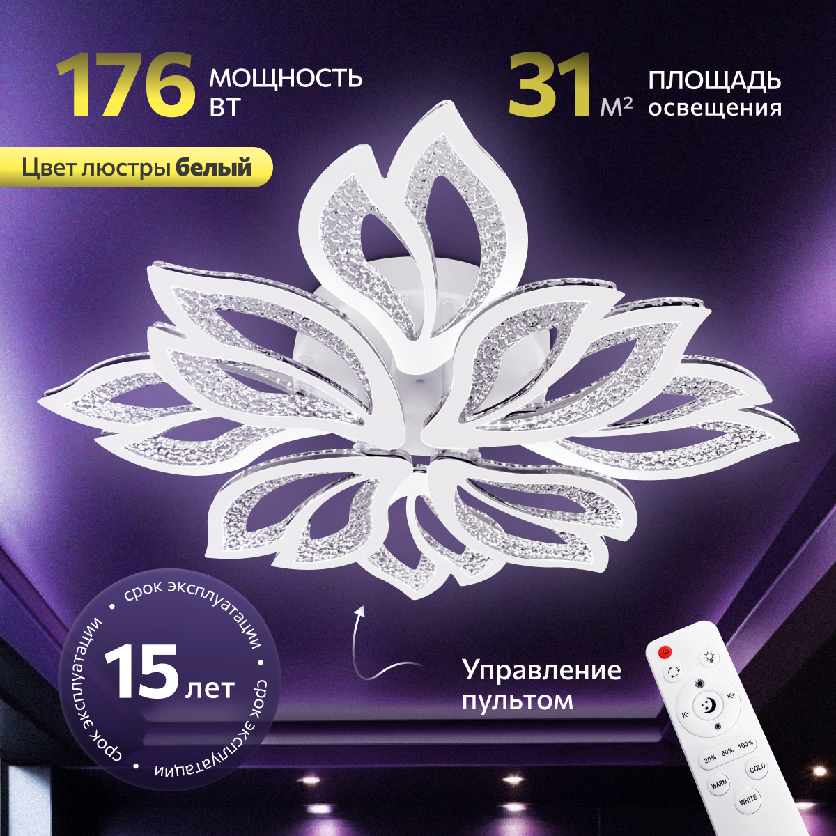 Люстра с пультом светодиодная потолочная 176W, 8 ламп, цветок, большая, белая, LEDCITY интересное: