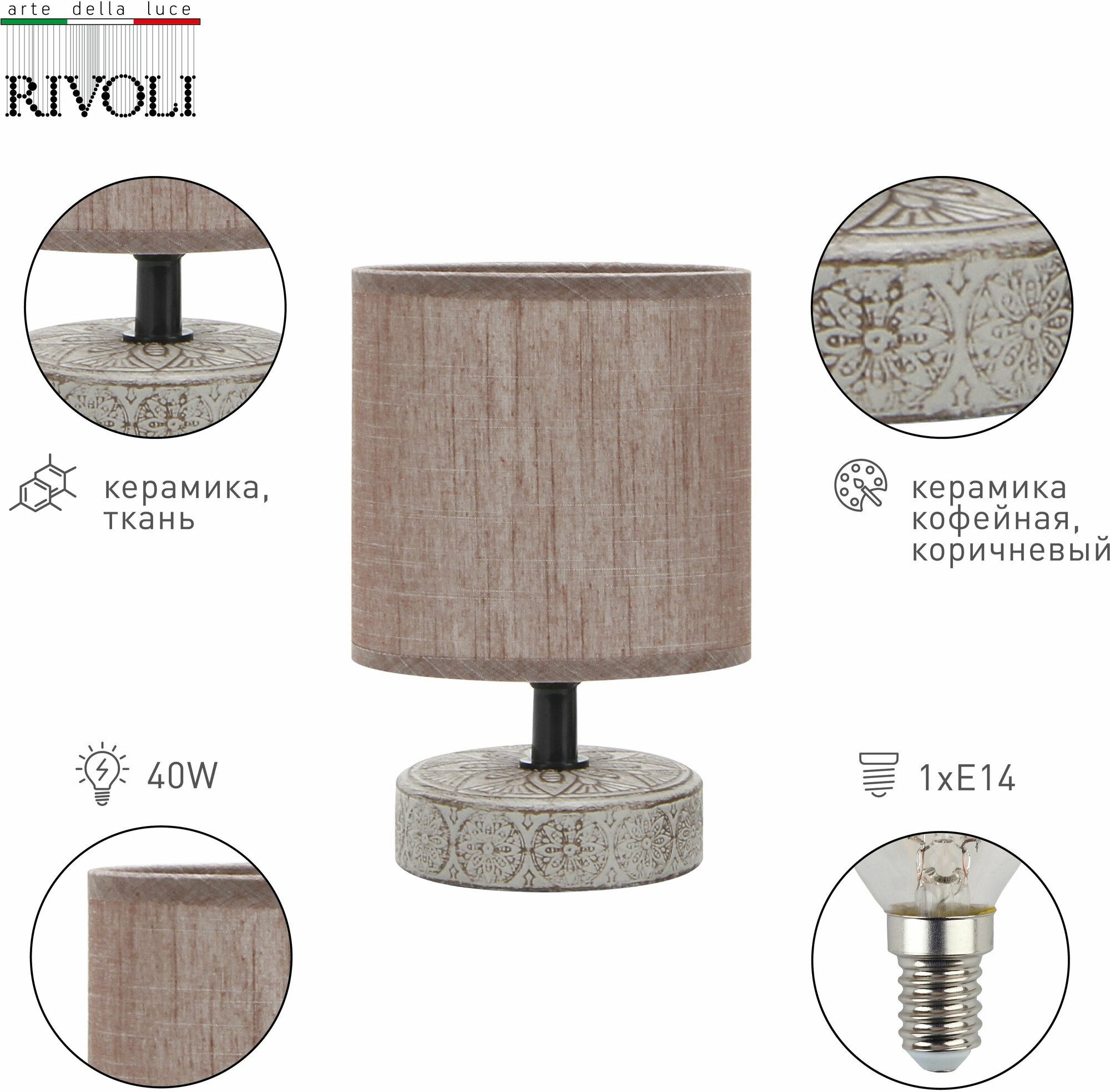 Rivoli св-к настольный 7070-502 Eleanor 1хЕ14 керамика 130х130х200 кофейный 57270 интересное: