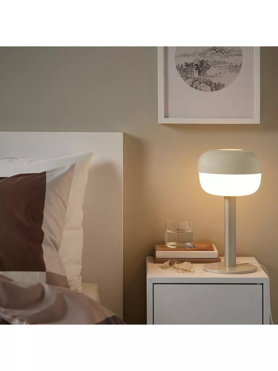 Лампа настольная в спальню BLÅSVERK бежевая интересное: