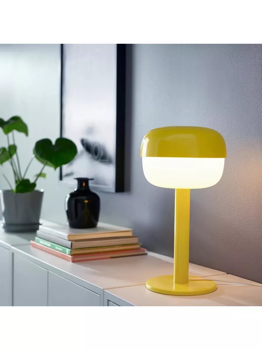 Лампа настольная в спальню BLÅSVERK желтая интересное: