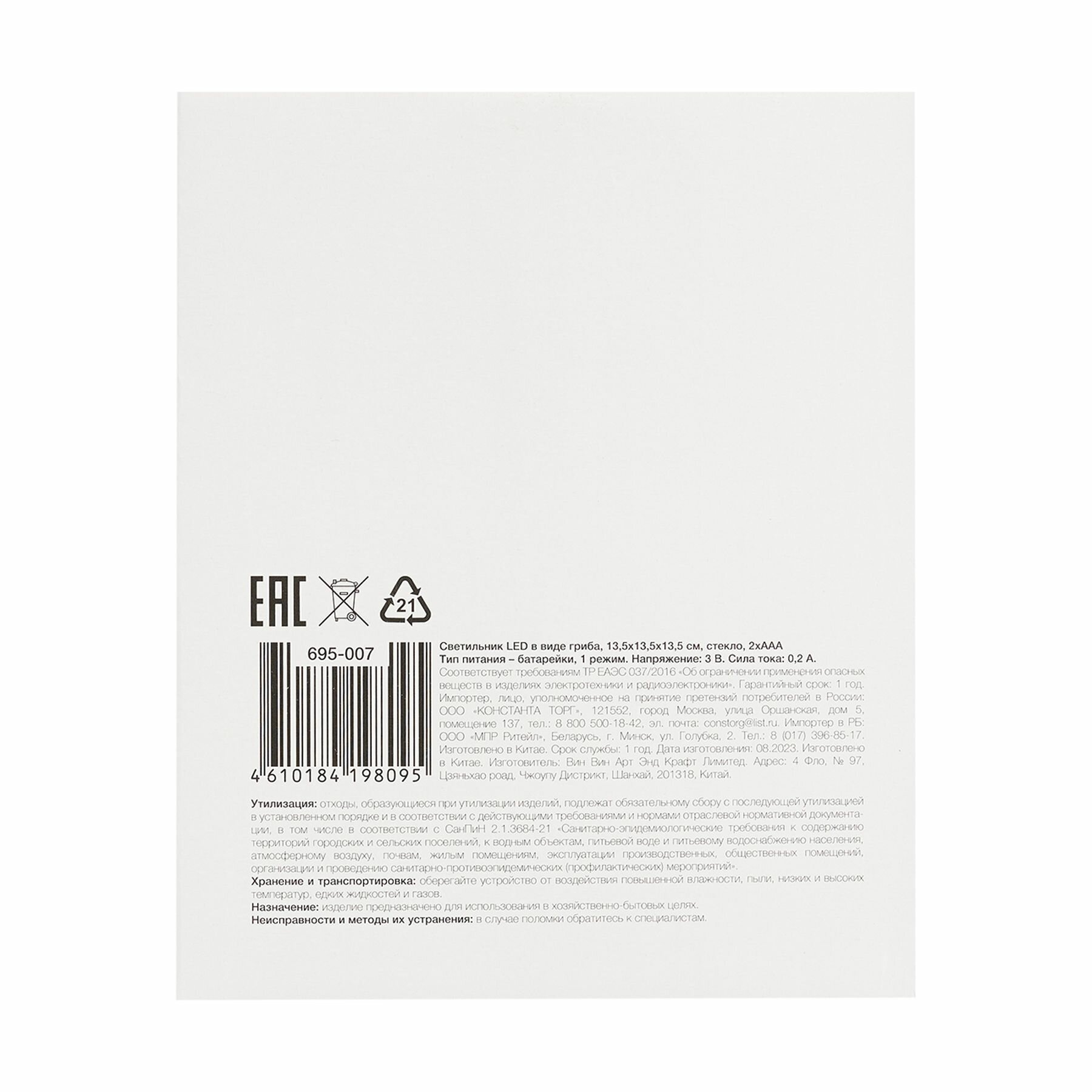 Светильник LED в виде гриба, 13,5x13,5x15,5 см, стекло, 2xААА, арт.07-42 интересное: