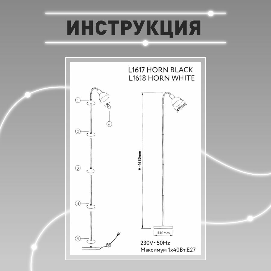Торшер Lamplandia L1618 HORN WHITE, Е27*1 макс 40Вт интересное: