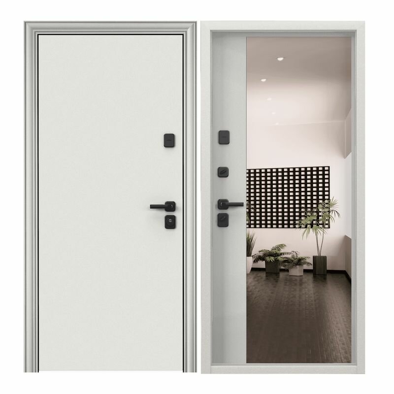 Входная дверь Labirint Лайн WHITE с зеркалом Фацет 960x2050, открывание левое