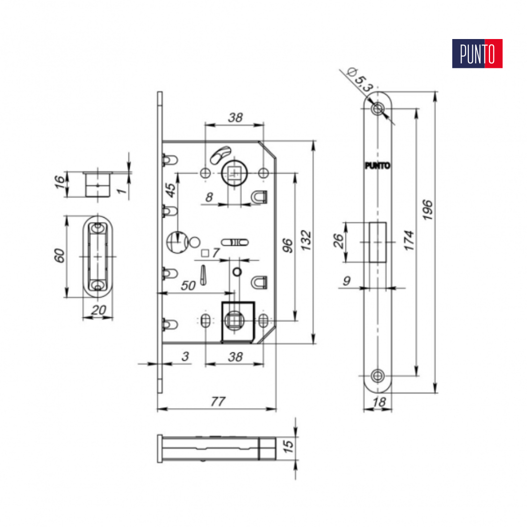 Замок магнитный врезной Punto (Пунто) ML96WC-50 WH белый для межкомнатных дверей