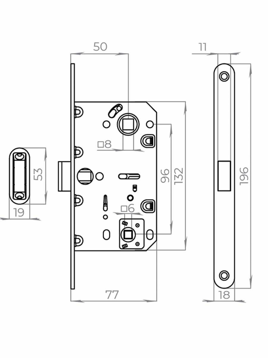 Замок магнитный врезной Punto (Пунто) ML96WC-50 SSC сатинированный хром для межкомнатных дверей