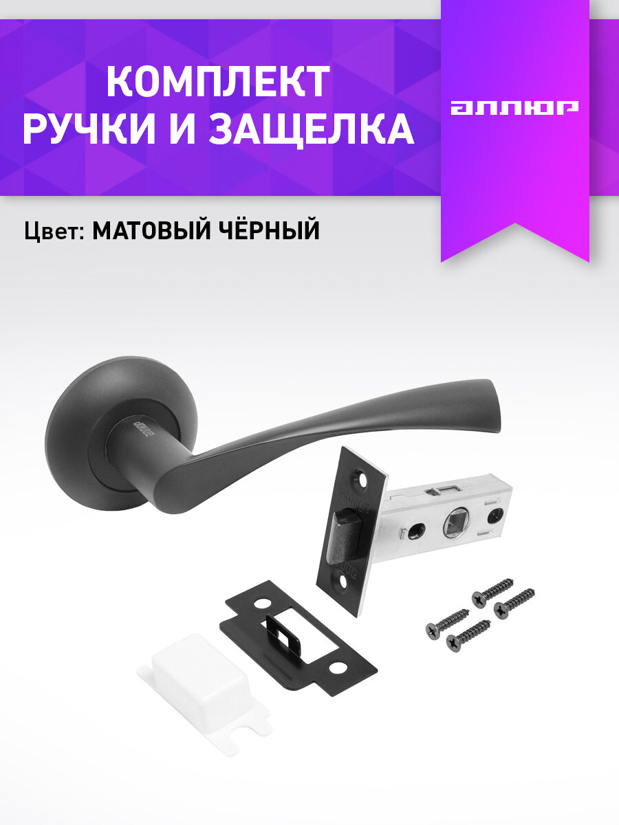 Комплект ручка дверная, защелка, поворотник аллюр АРТ "оскар" BL+L7050S BL+BK-R1 BL (13150/S7050), матовый черный