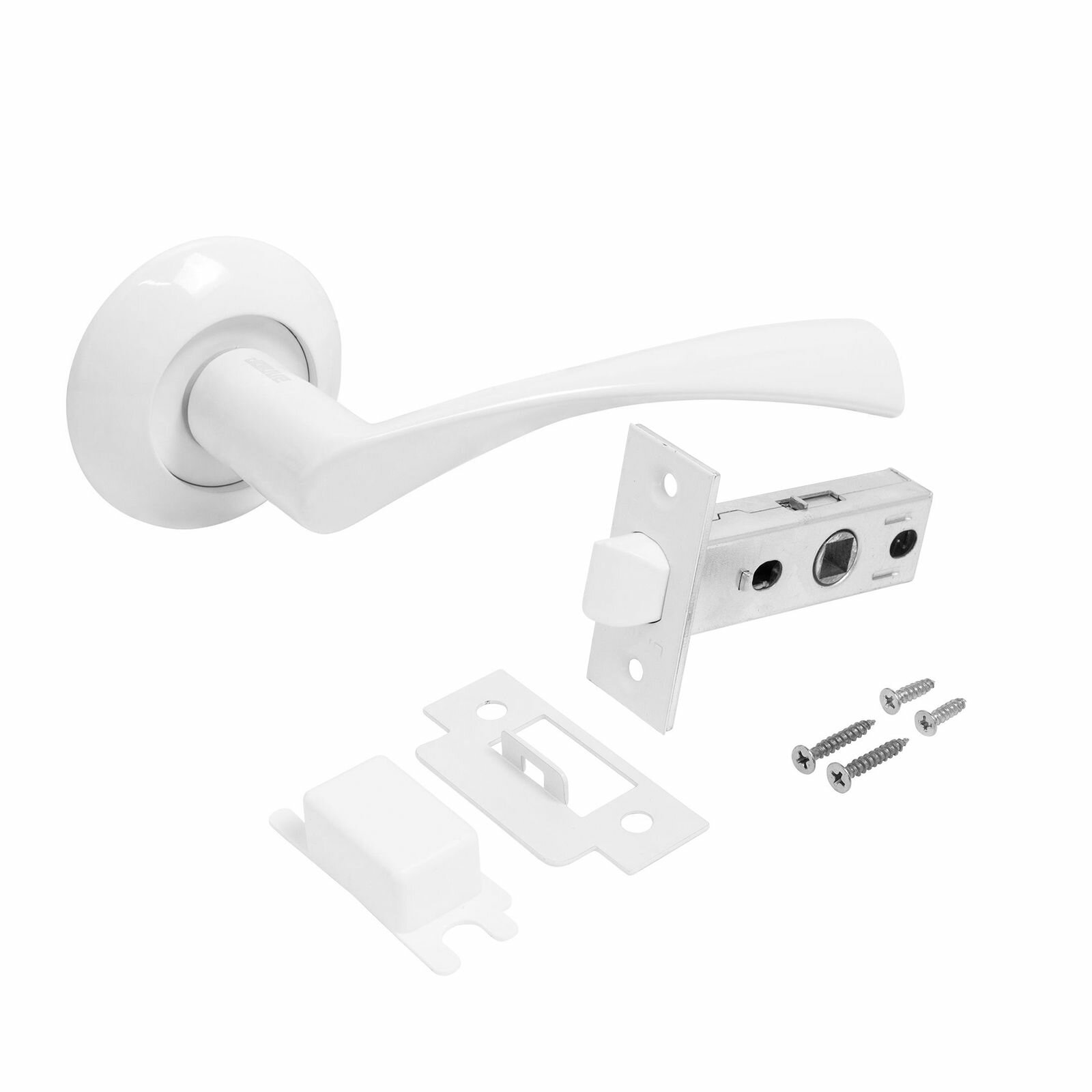Комплект ручка дверная, защелка, поворотник аллюр АРТ "оскар" W+L7050S W+BK-R1 W (13110/S7050), матовый белый