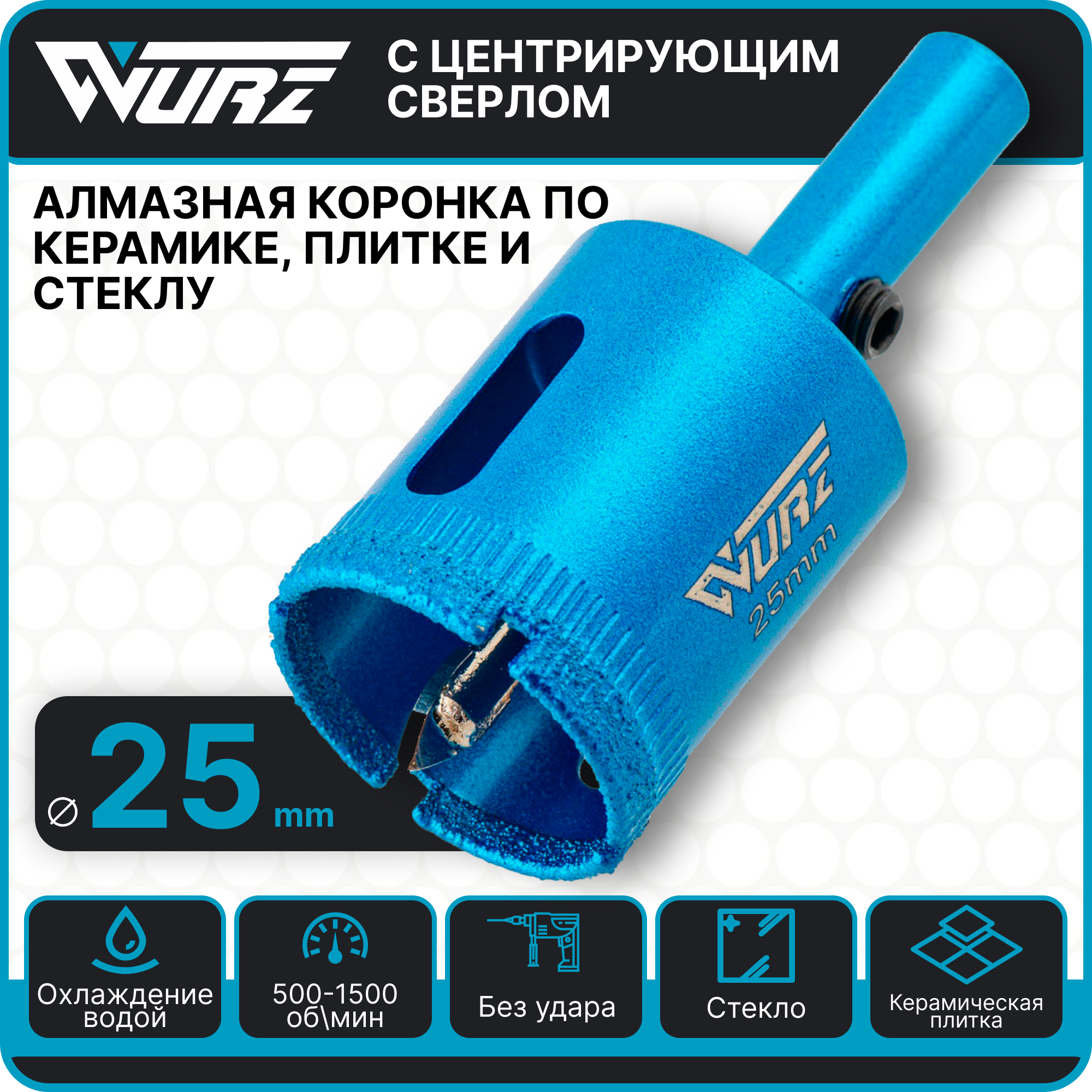 Купить Коронка алмазная 25мм с центрирующим сверлом по керамике и стеклу Wurz 92025