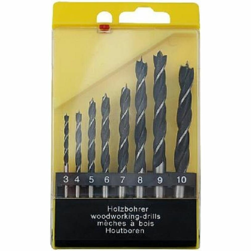 Набор сверл по дереву 8 шт, 3 - 10 мм. цилиндрический хвостовик