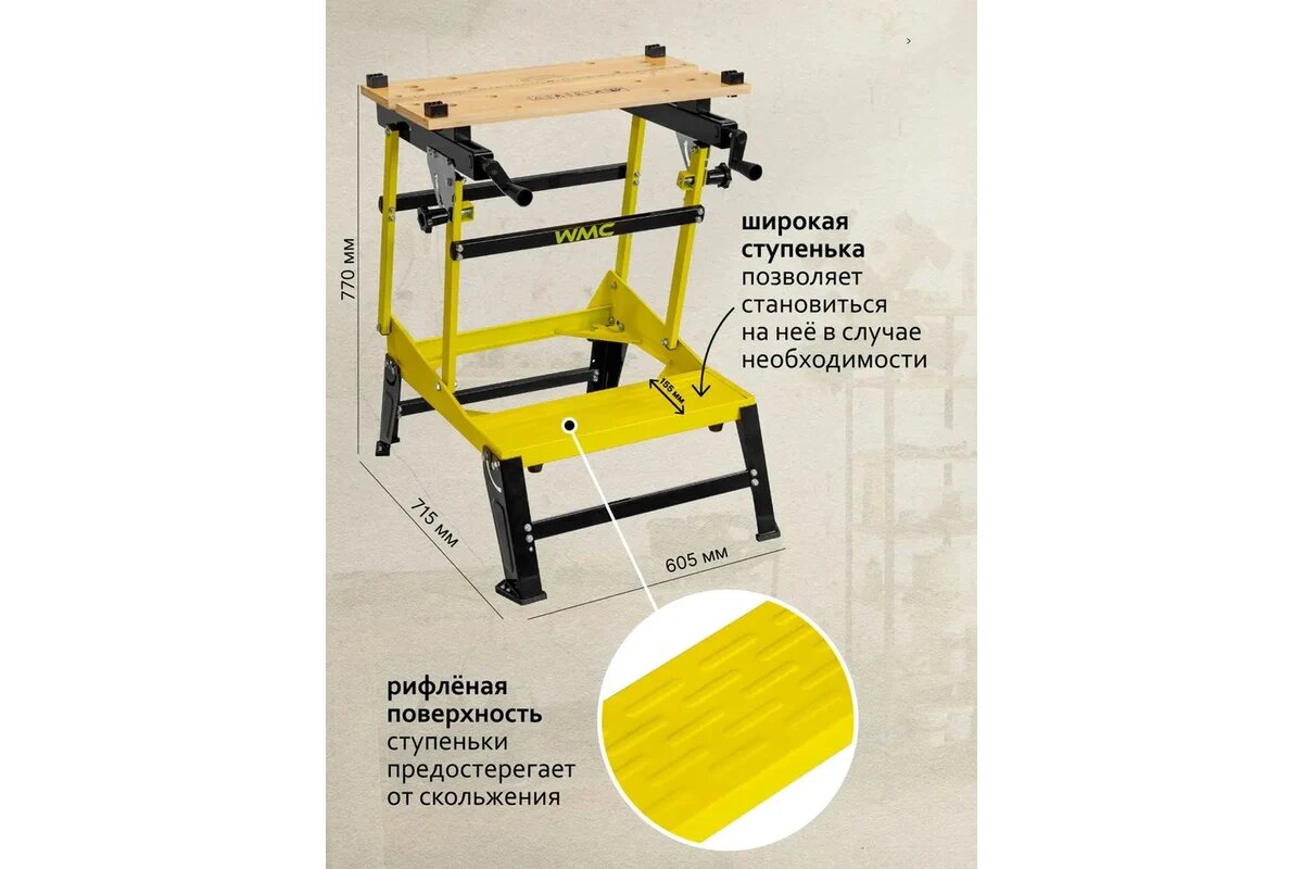 Верстак столярный металлический с разводной столешницей WMC 605x715x770мм,нагрузка 100кг интересное: