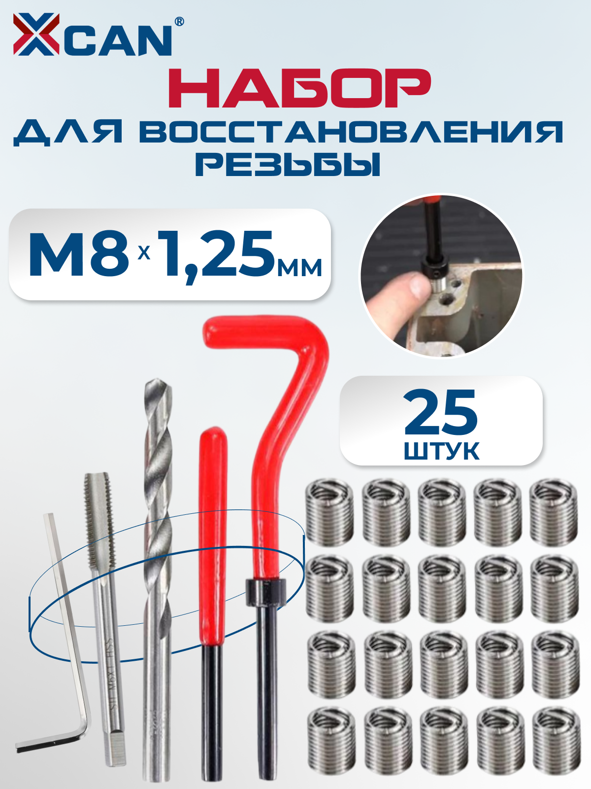 Набор для восстановления резьбы XCAN, М8х1,25мм, 25 предметов интересное: