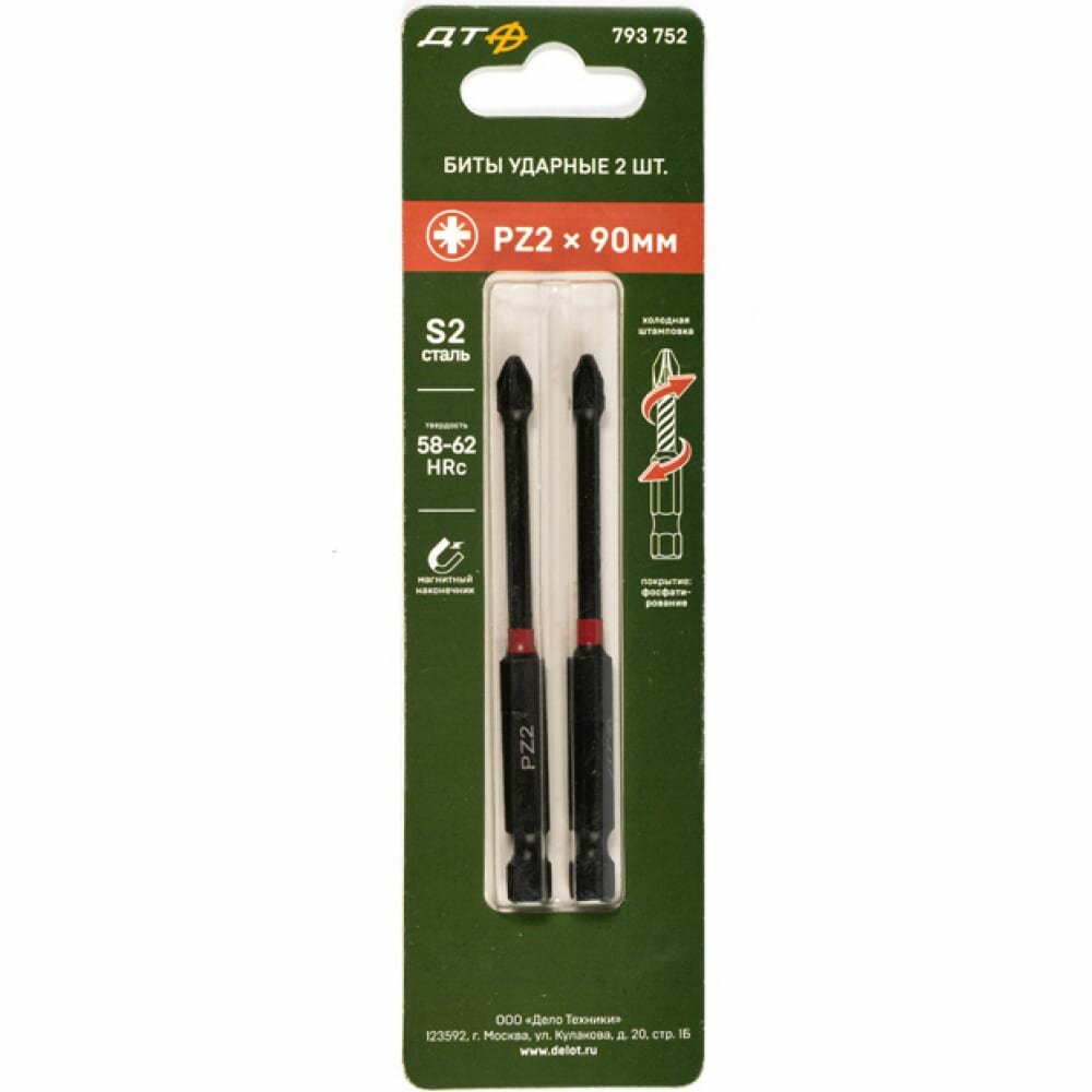Биты ударные для шуруповёрта 1/4" PZ2 х 90 мм 2 шт., Дело Техники, 793752