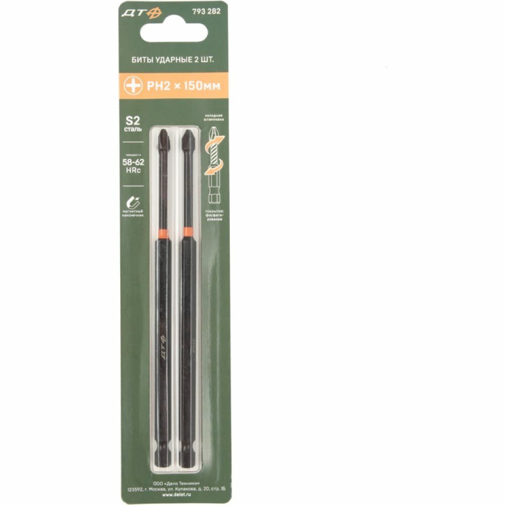 Бита ударная 1/4" PZ2×150 мм 2 шт., Дело Техники, 793782
