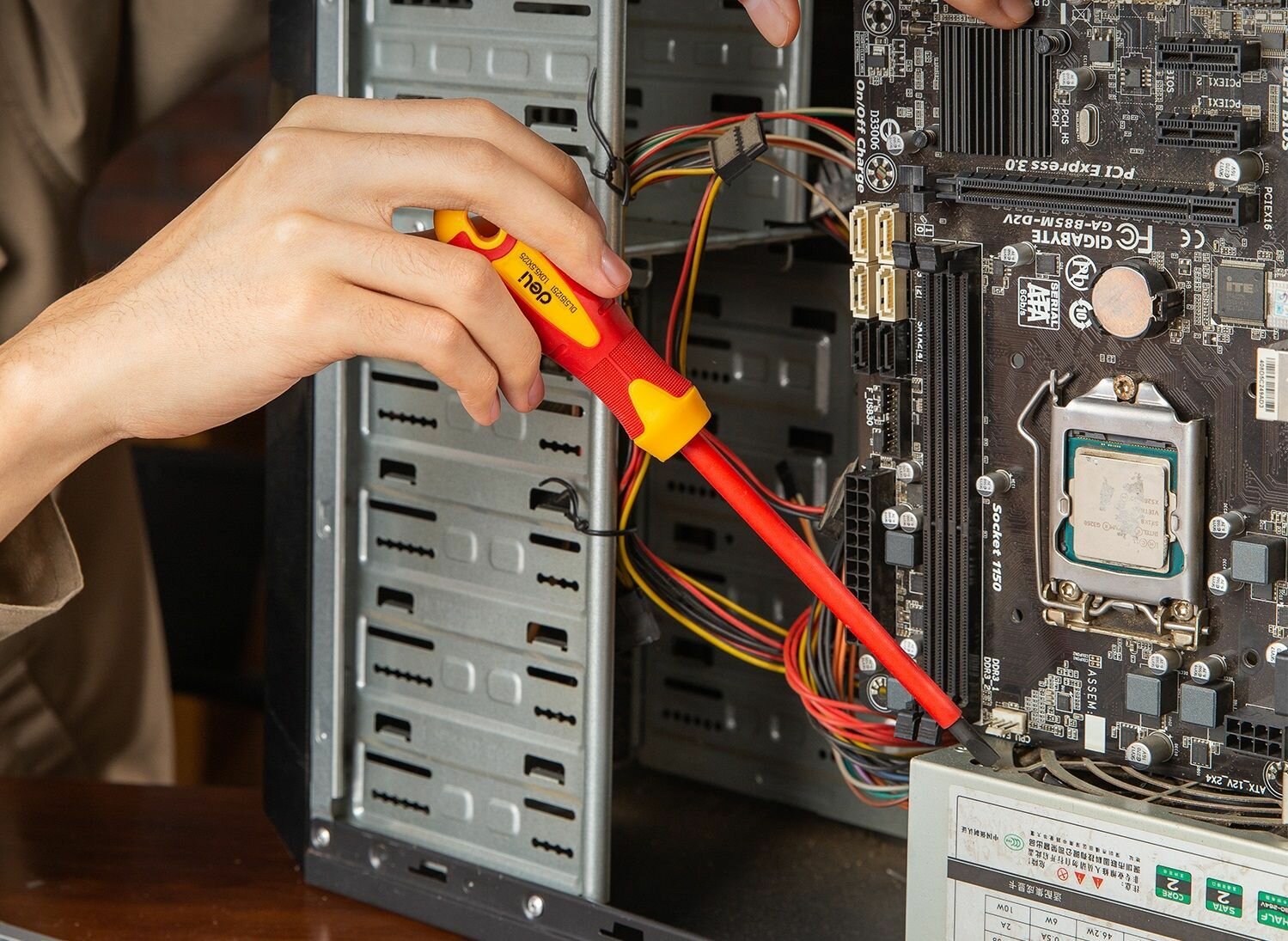 Диэлектрическая шлицевая отвертка Deli DL5151251 5,5х125мм (сертификат VDE до 1000В, магнитный наконечник, сталь Cr-V, рукоять PP+TPR) интересное: