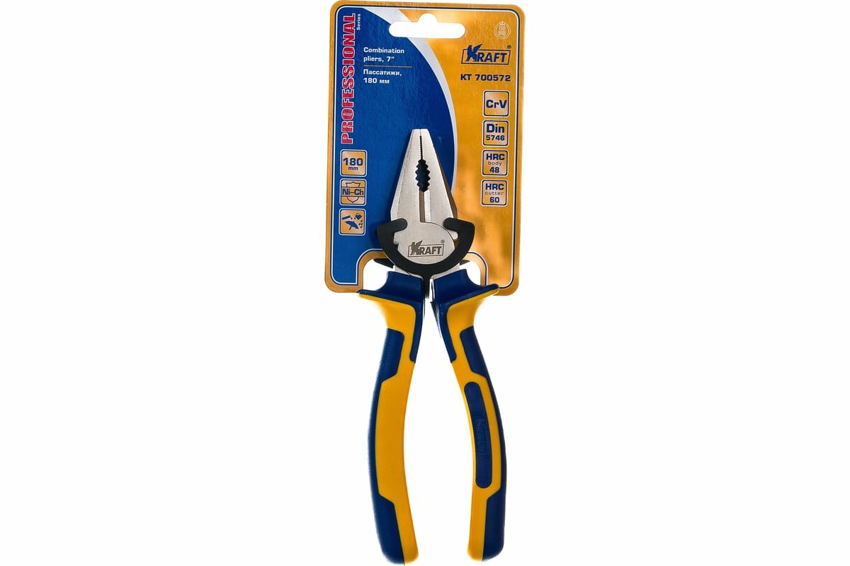 Пассатижи Комбинированные 180 Мм (Cr-V, Двухкомпонентная Рукоятка, Твердость 48Hrc/62Hrc) Kraft арт. KT 700572