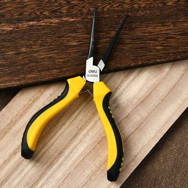 Мини-тонкогубцы удлиненные 150мм Deli DL103202 двухкомпонентная рукоять интересное: