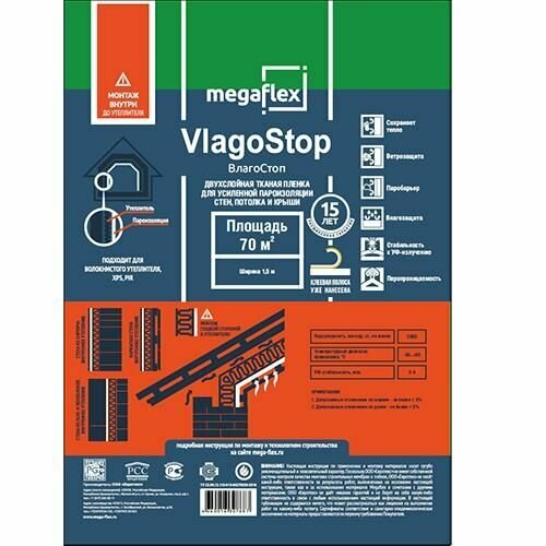 Гидро-пароизоляция VlagoStop D (ш 1.5, 35м2) двухслойная пленка с одной клеевой лентой Мегафлекс интересное: