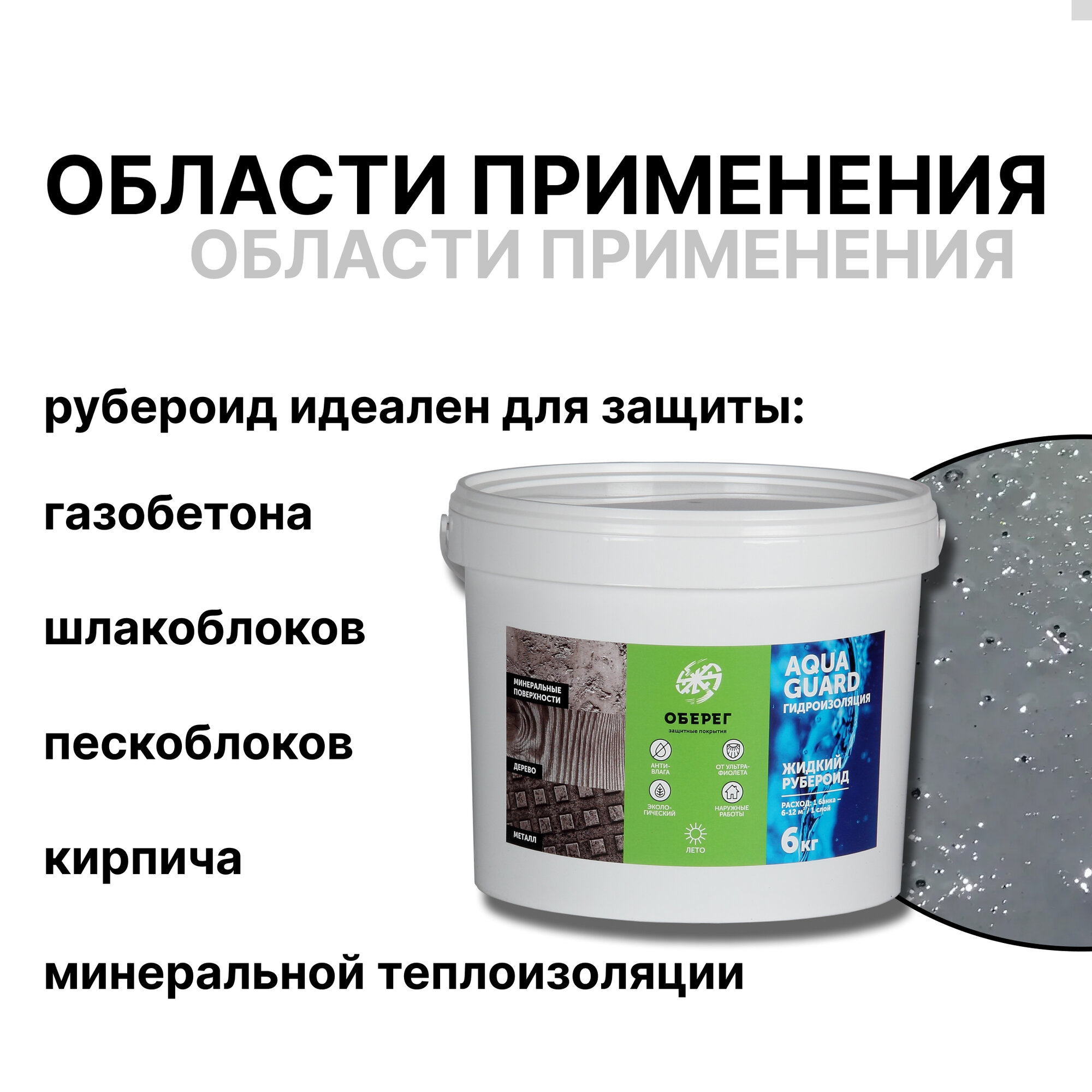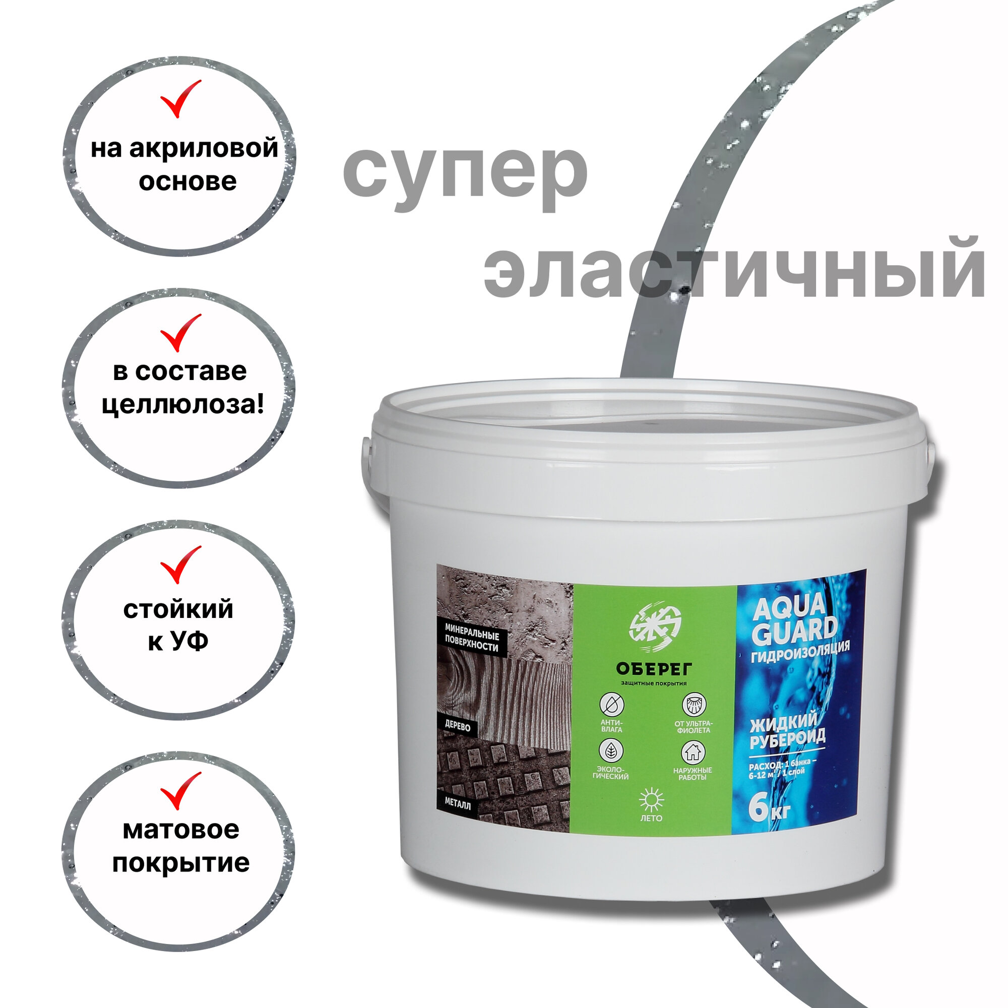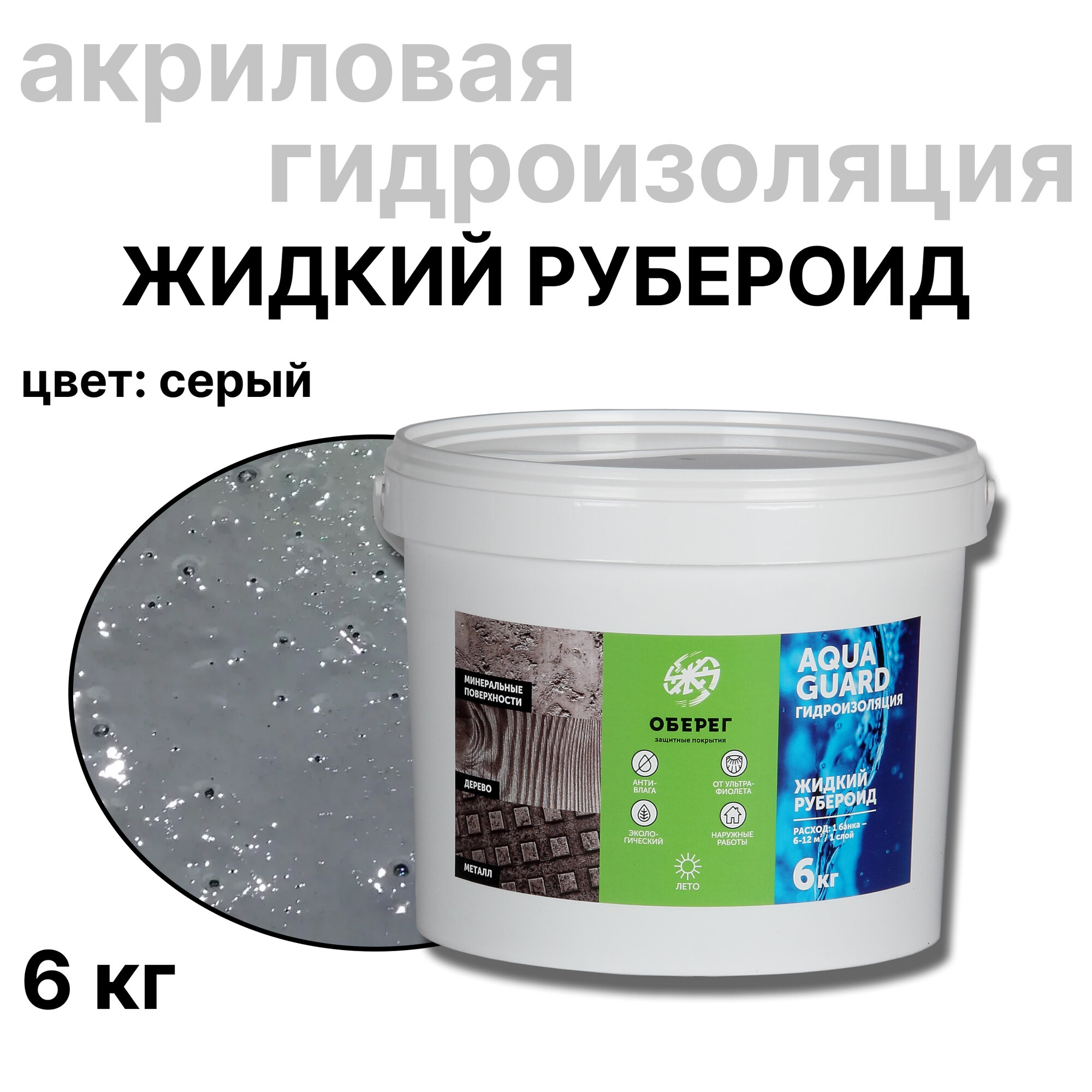 Жидкий рубероид акриловый Оберег AquaGuard (цвет серый) - 5л/6кг интересное: