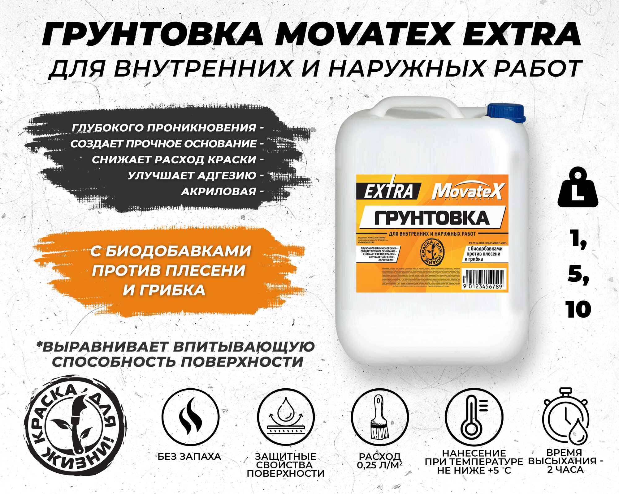 Movatex Грунтовка EXTRA для наружных и внутренних работ 5 л Т11879 интересное: